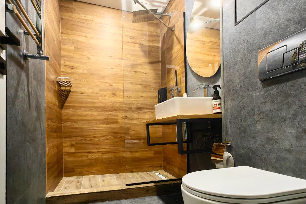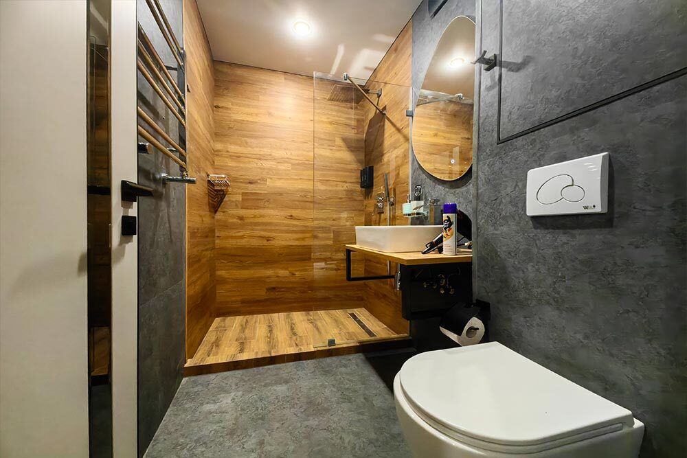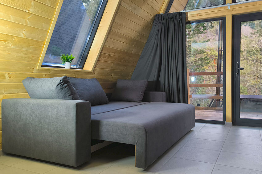 Рассчитан на комфортное проживание до 8 гостей (для восьмого гостя предусмотрен раскладной пуфик, который превращается в спальное место размером 70×190 см).