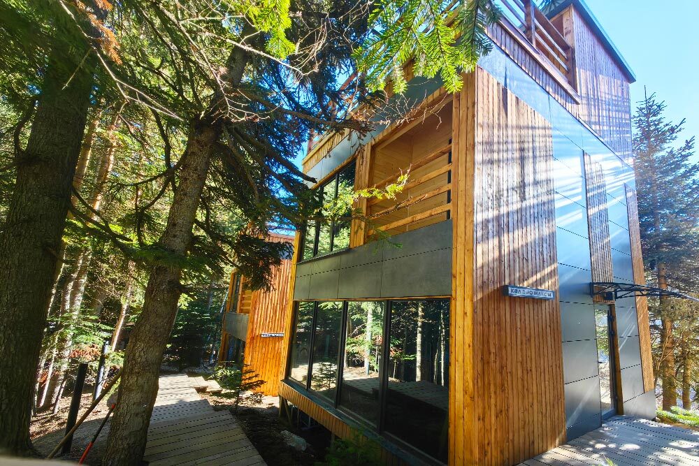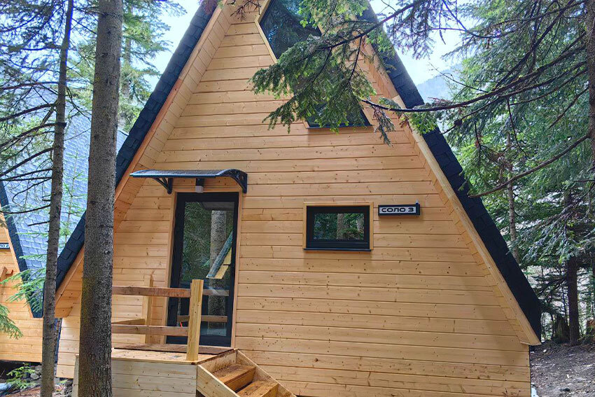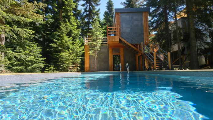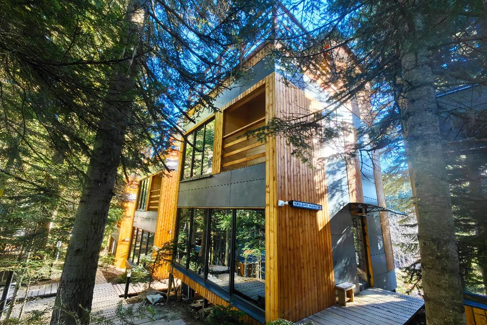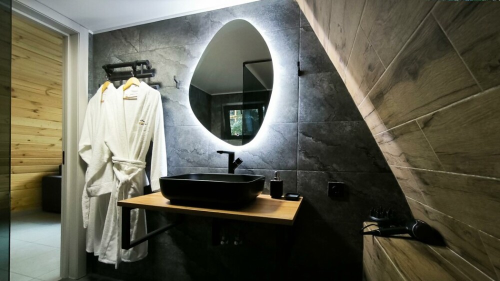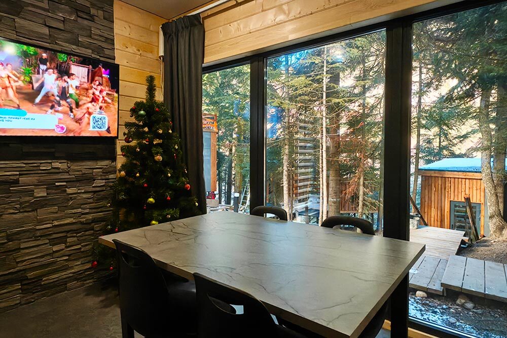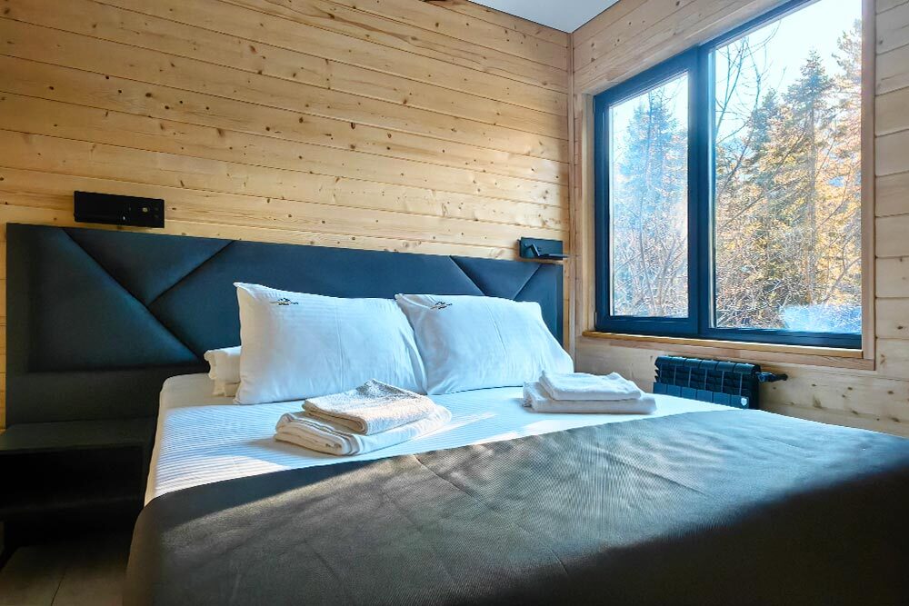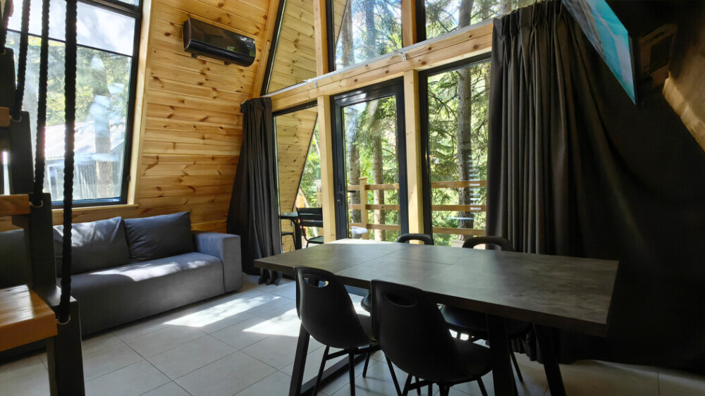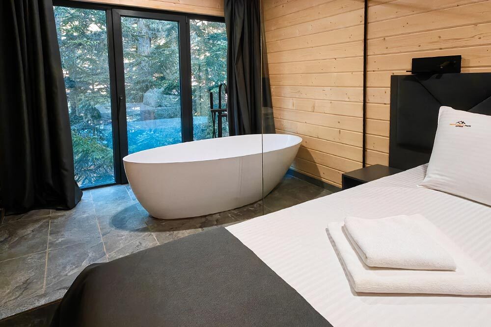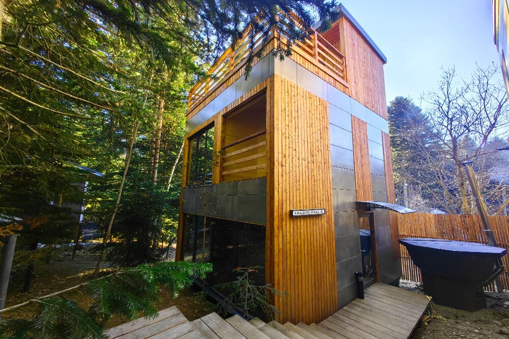 Новый круглогодичный отель в пихтовом лесу на берегу горной реки с банным комплексом и подогреваемым бассейном, коттеджами, укомплектованными полноценной кухней с посудомоечной машиной, двумя обеденными зонами и террасой. В коттеджах «умный дом» с Алисой, теплые полы и панорамное остекление.