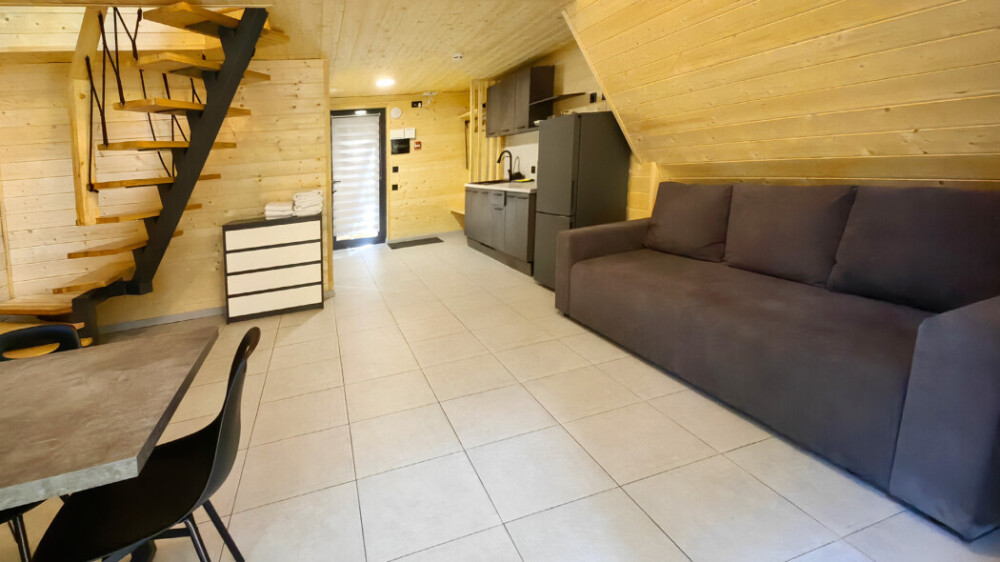 Рассчитан на комфортное проживание до 5 гостей (для пятого гостя предусмотрен раскладной пуфик, который превращается в спальное место размером 70×190 см.)