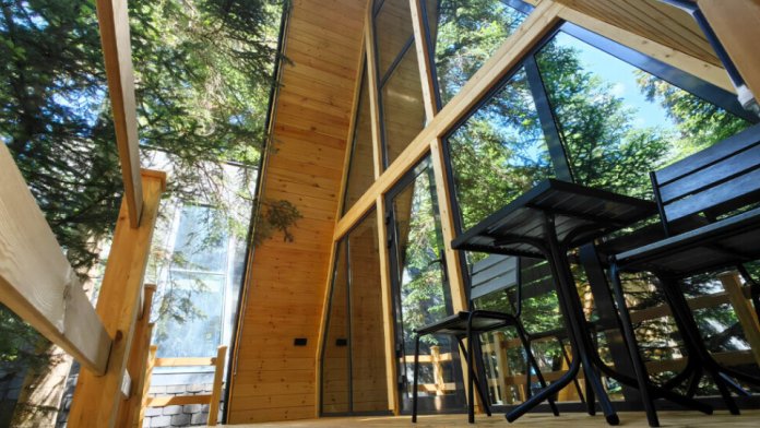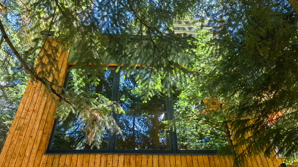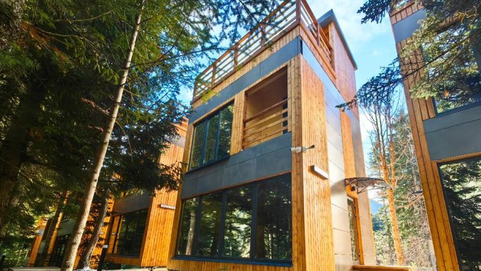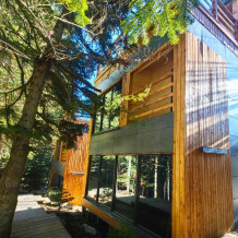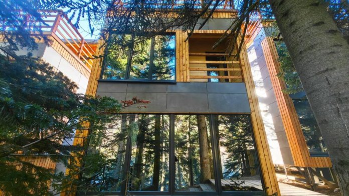 Дом Соло 7 с террасой и великолепным видом на лес и горы из панорамных окон.