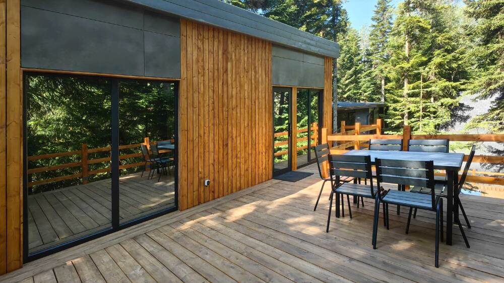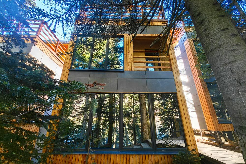 Дом Соло 8 с террасой и великолепным видом на лес и горы из панорамных окон.