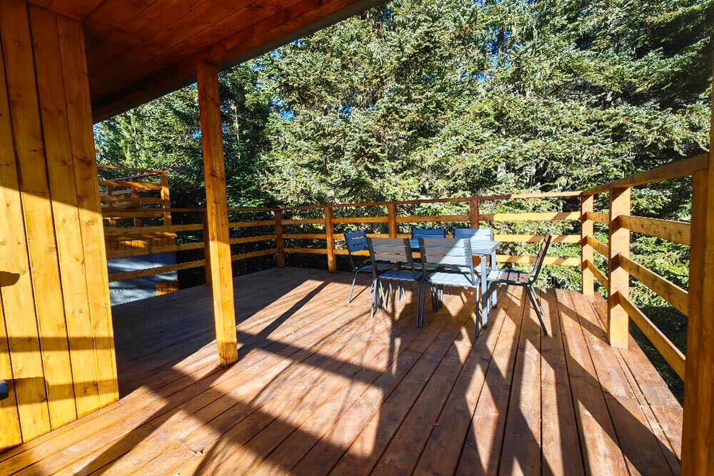На террасе расположен индивидуальный банный чан, который мы нагреваем до комфортной температуры 40°C. Нагрев чана до 20:00 включен в стоимость проживания. Если Вы хотите воспользоваться чаном после 20:00, услуга предоставляется за дополнительную плату.