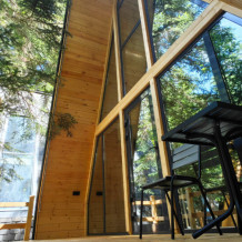Дом Соло 3 с банным чаном на террасе и великолепным видом из панорамных окон на реку Архыз, лес и горы.