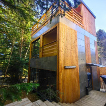 Дом для большой компании с террасой и с панорамным видом на лес и горы.