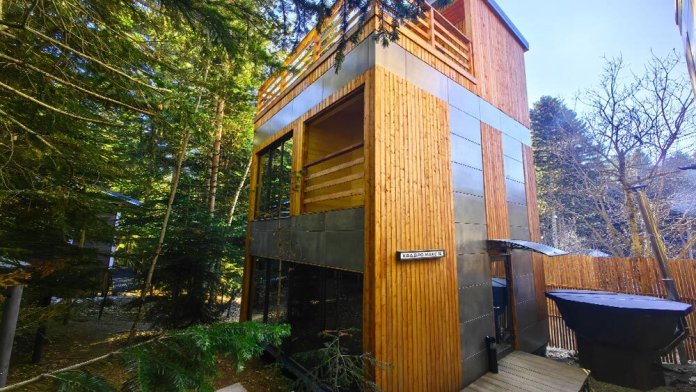 Дом Соло 6 с террасой и великолепным видом на лес и горы из панорамных окон.