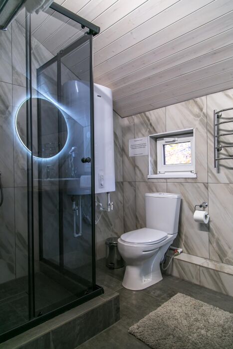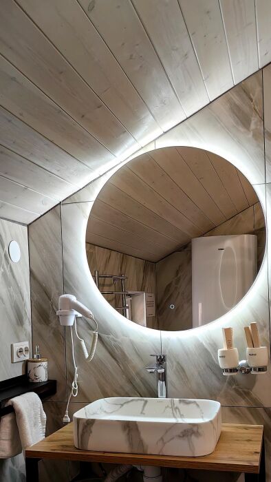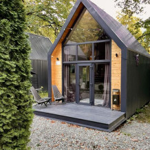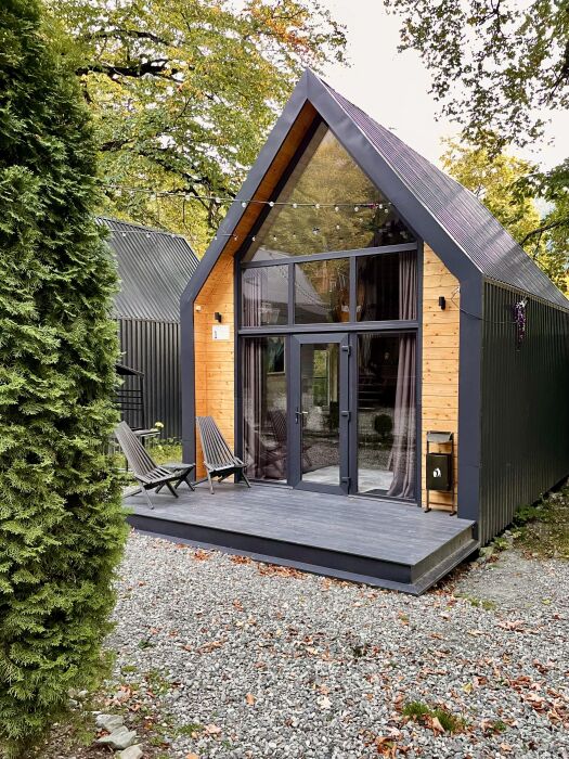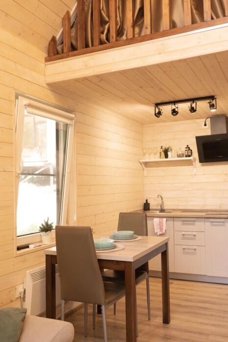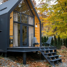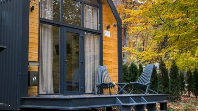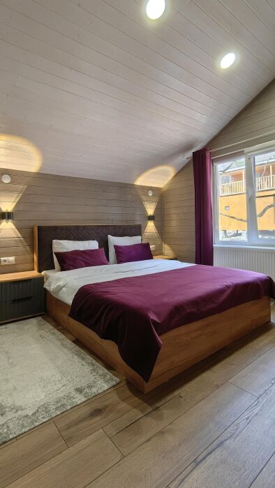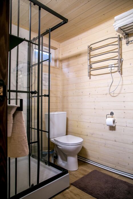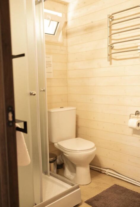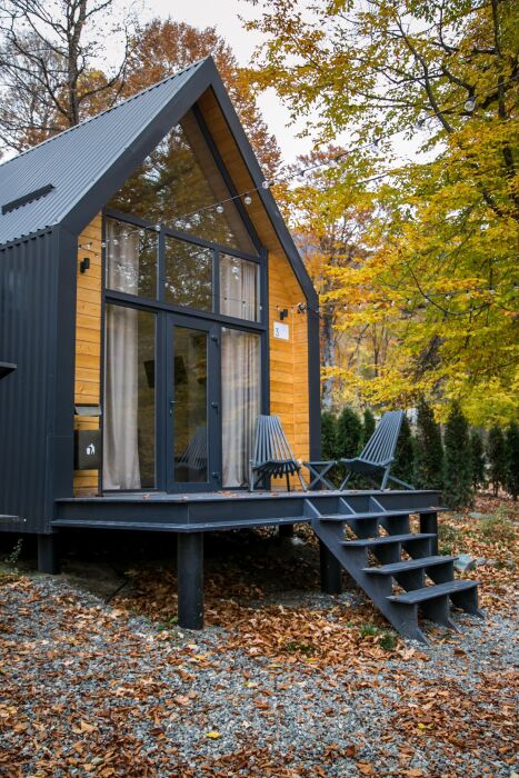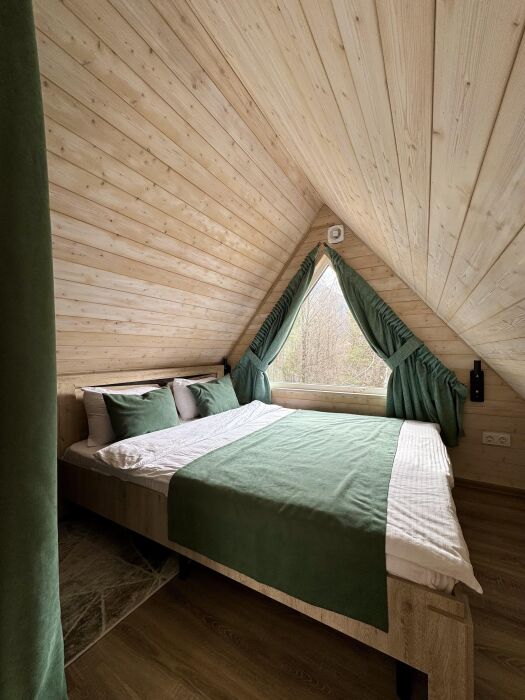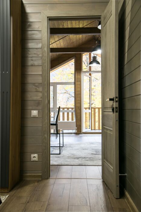 Барнхаусы: современные 4- местные дома с панорамным видом на горы и лес. расположена двуспальная кровать, светильники с USB разъемом и прикроватный столик. В комнате находится диван, шкаф-купе, телевизор. В горнолыжный сезон предоставляется сушилка для одежды.