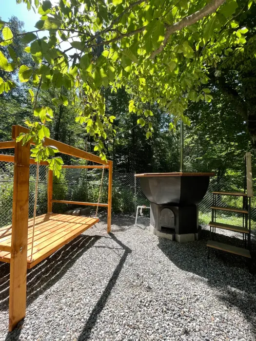 В распоряжении гостей закрытая парковка, зона для барбекю, костровая зона, кинотеатр под открытым небом, детская площадка и живой уголок. Дополнительно можно воспользоваться баней и банным чаном, а также заказать экскурсию до озёр и водопадов.
