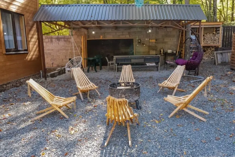 На территории базы: собственная костровая зона для посиделок с настоящим самоваром, мангальная зона. Для удобства гостей предусмотрена парковка для автомобиля.
