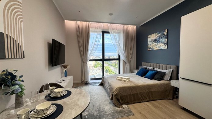 Добро пожаловать в апартаменты, где стиль и комфорт встречаются в сердце города. Уникальный ар-деко дизайн, панорамные окна с захватывающим видом, роскошный вход и атмосфера премиального дома подарят Вам особенные впечатления. Квартира находится всего в нескольких минутах от центра, рядом с удобной транспортной развязкой, множеством уютных мест для ужина рядом - идеальное место для для бизнес-путешествий, туризма и романтики.