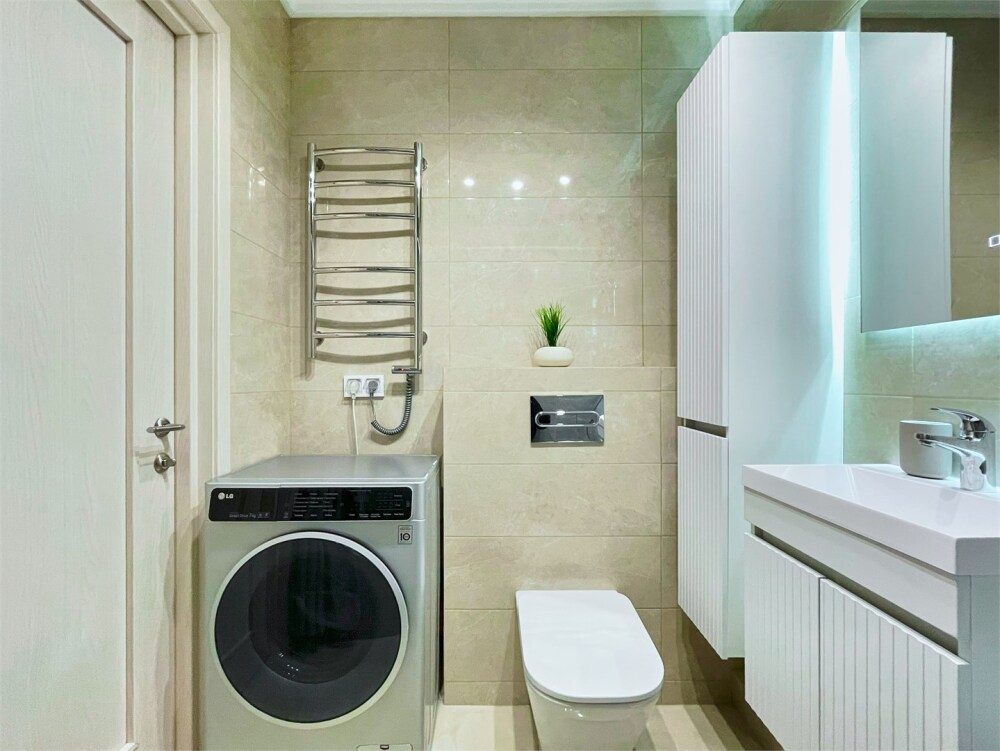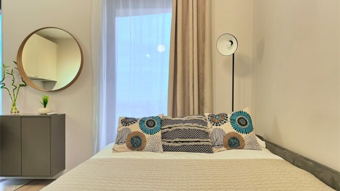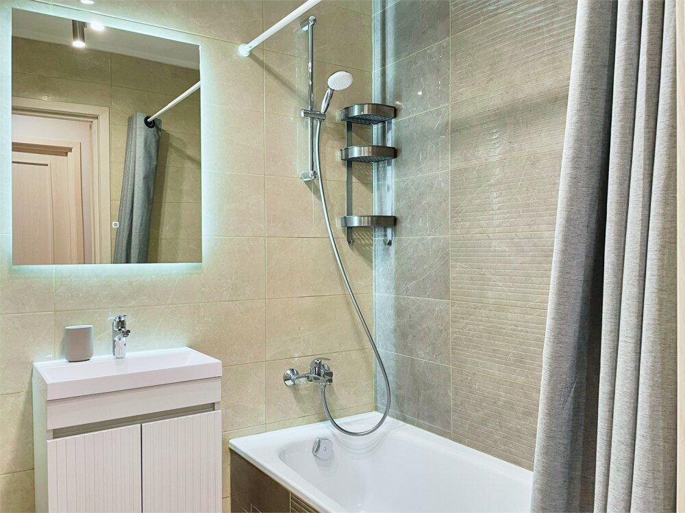 Удобства апартамента: Бесконтактное заселение, двуспальная кровать (2 спальных места), кондиционер, микроволновая печь, ванная, гардеробная, необходимая посуда включая бокалы, красивый вид из окна на сторону рассвета.