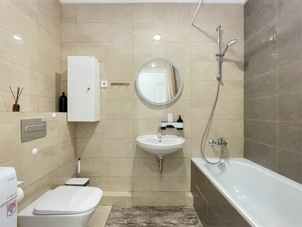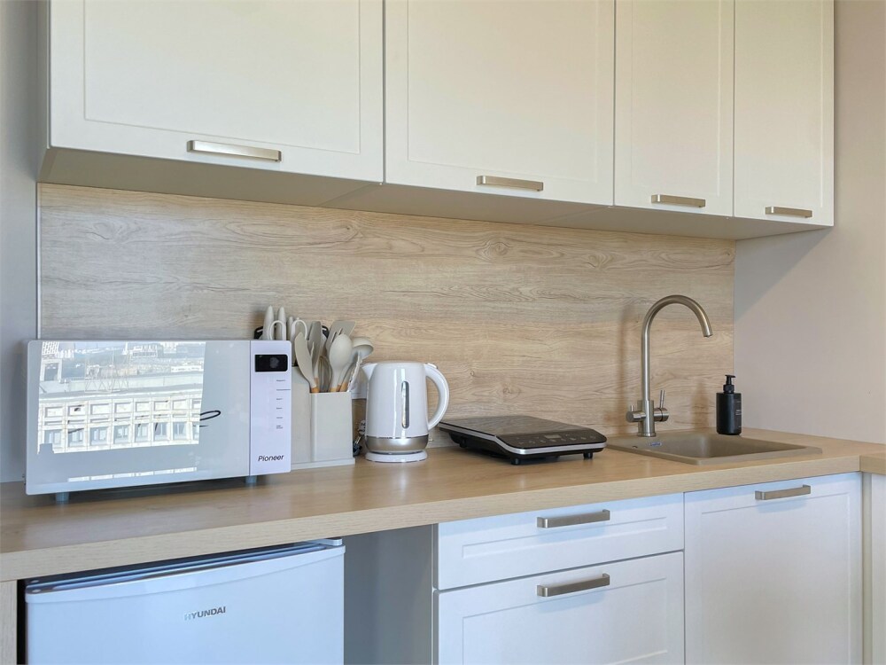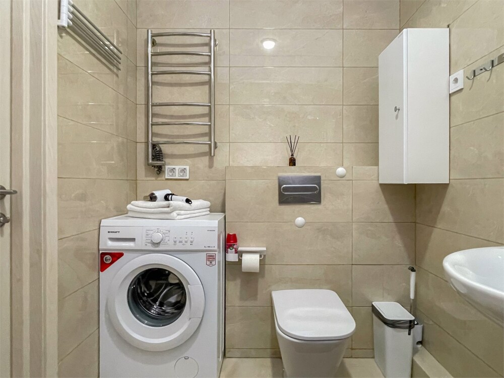 Удобства апартамента: Бесконтактное заселение, двуспальная кровать (2 спальных места) + диван (2 места), кондиционер, микроволновая печь, ванная, гардеробная, необходимая посуда включая бокалы, красивый вид из окна на сторону рассвета.