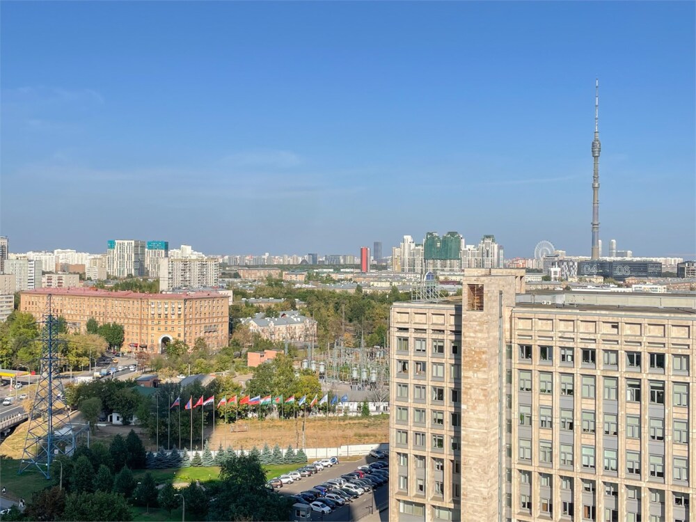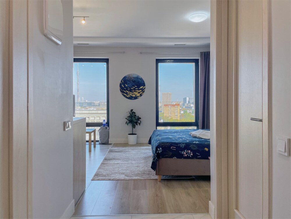 Апартаменты «Style» с панорамными окнами на 14 этаже небоскреба бизнес-класса в жилом комплексе «D1» с видом на Останкинскую телебашню.