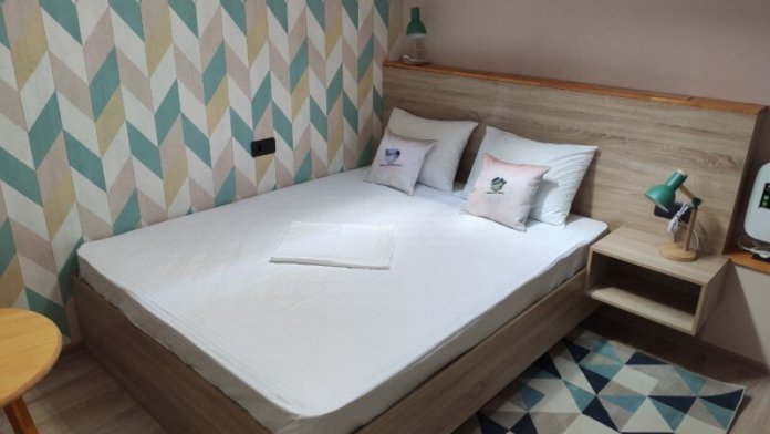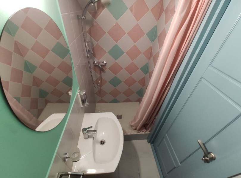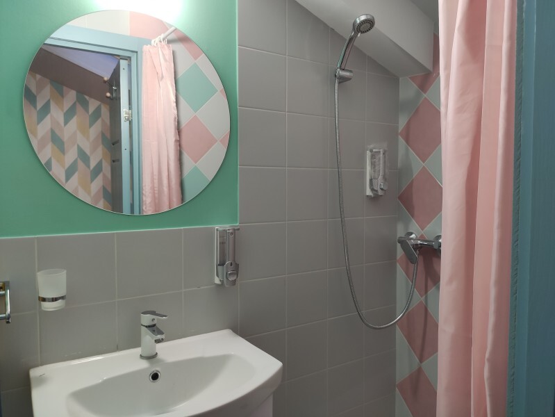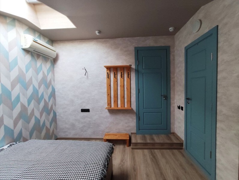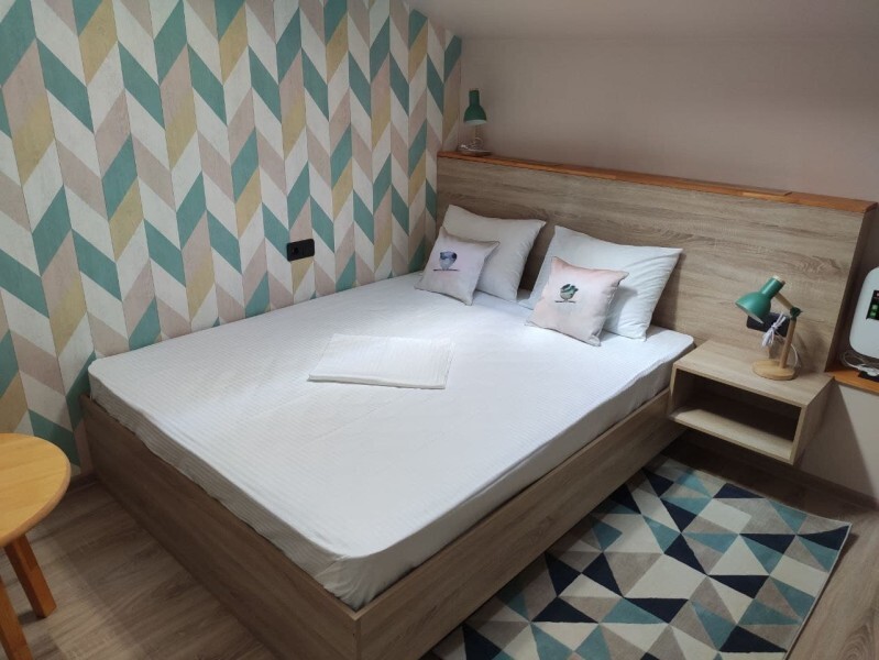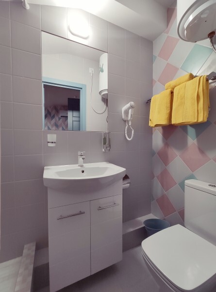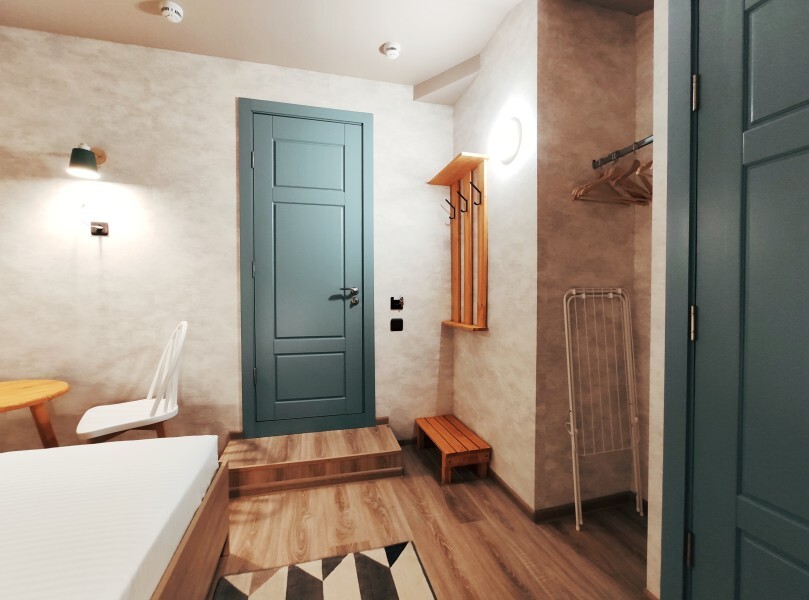 Уютный номер с собственным санузлом без окна. В номере двуспальная кровать с ортопедическим матрасом, комплект полотенец, принадлежности для душа (шампунь, гель), фен, горячая вода из бойлера. Номер оборудован приточно-вытяжной системой вентиляции с бризером (очиститель уличного воздуха) и кондиционером.