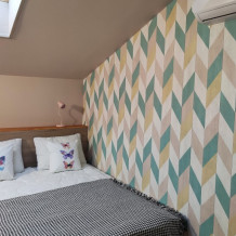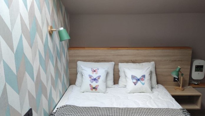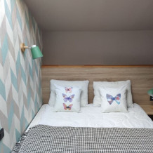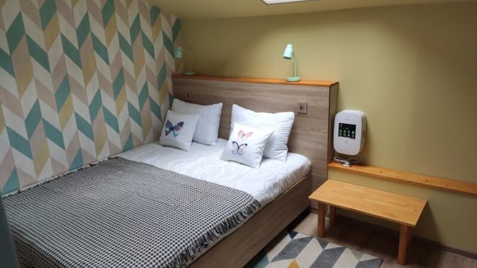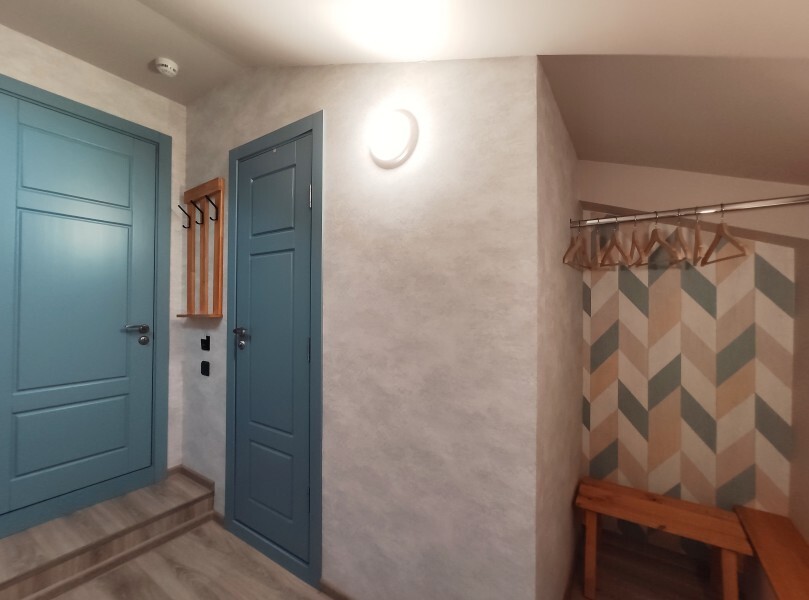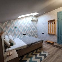 Уютный семейный номер с собственным санузлом и мансардным окном. В номере двуспальная кровать с ортопедическим матрасом и кресло-кровать с дополнительным спальным комплектом. Комплект полотенец, принадлежности для душа (шампунь, гель), фен, горячая вода из бойлера. Номер оборудован приточно-вытяжной системой вентиляции с бризером (очиститель уличного воздуха) и кондиционером. Мансардное окно со шторкой блэкаут.