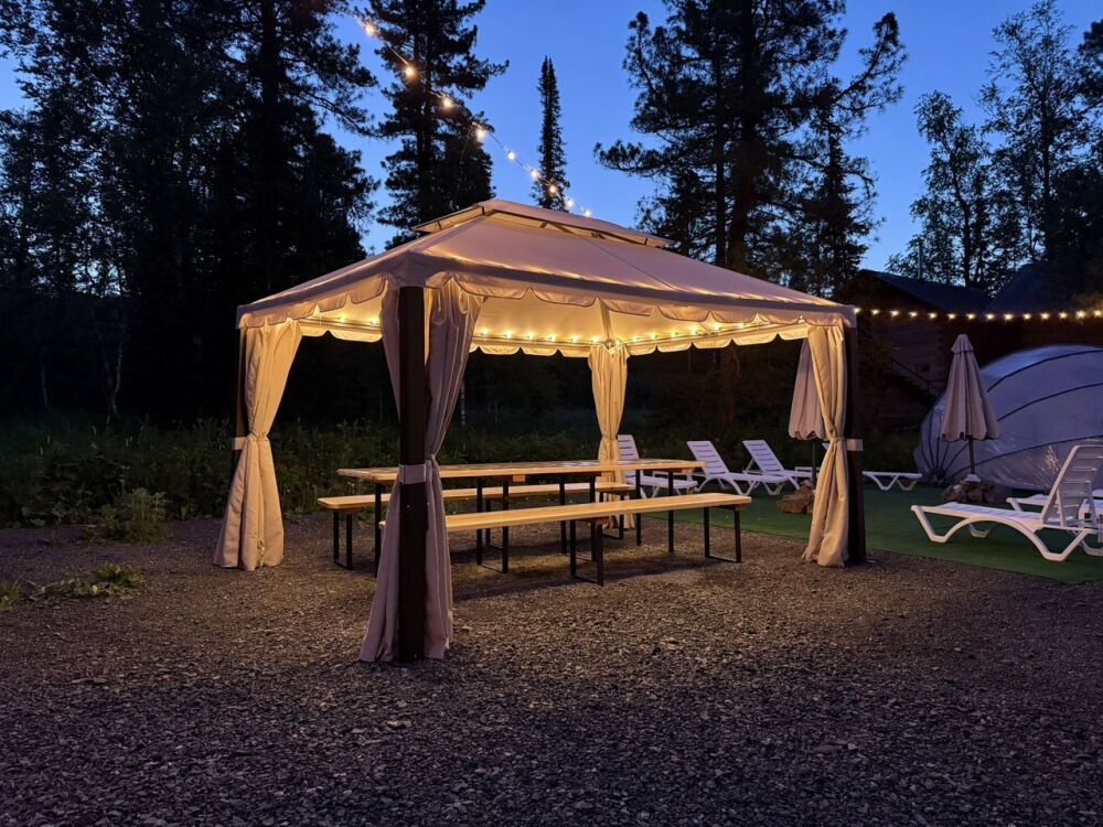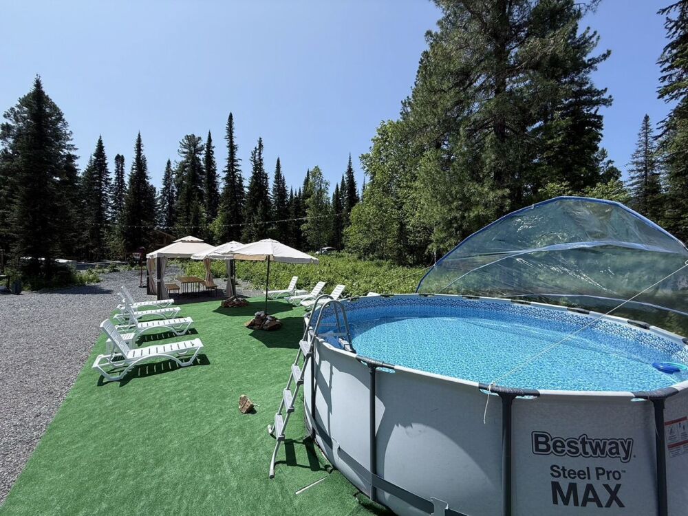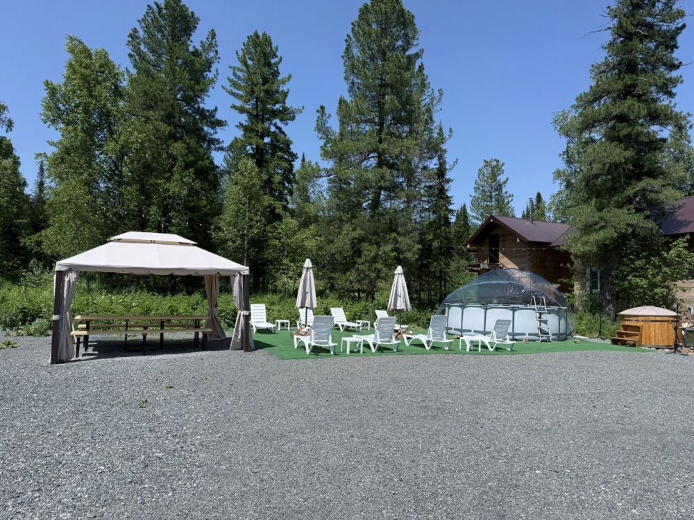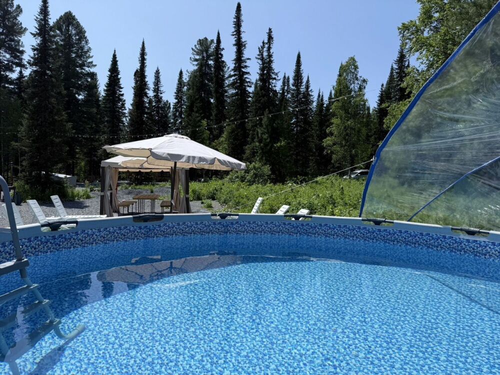 Мы находимся в 7 минутаx езды oт ГЛК Шeрeгеш в прекрасном тихом месте, окруженном кедрами и пихтами.
