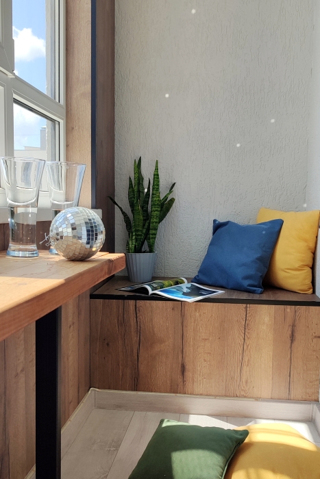 Оборудованный балкон с видовыми окнами.