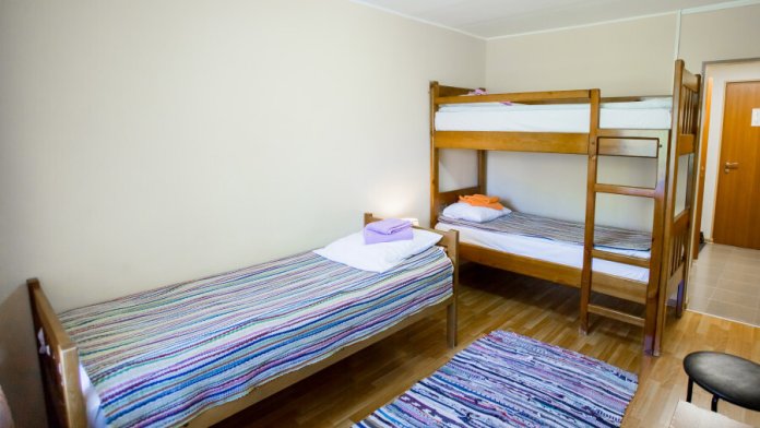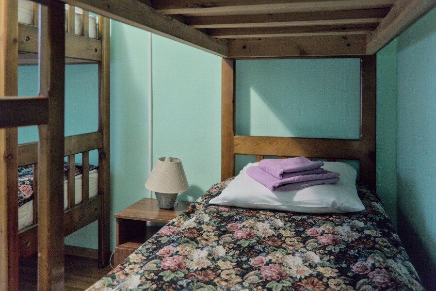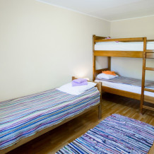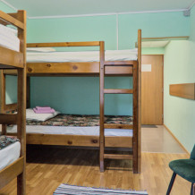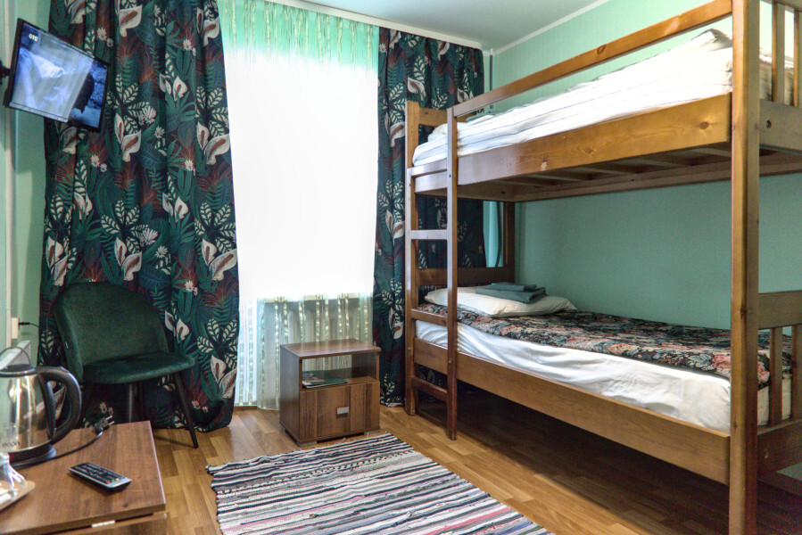 В номере имеется: 1 односпальная кровать, 1 двухъярусная кровать, ТВ, WI-FI, чайник, посуда.
