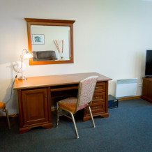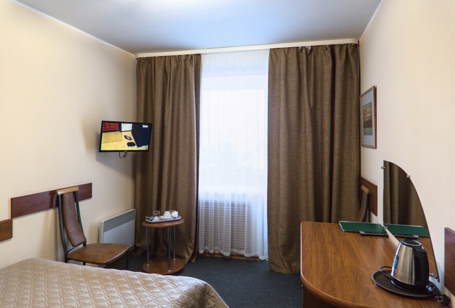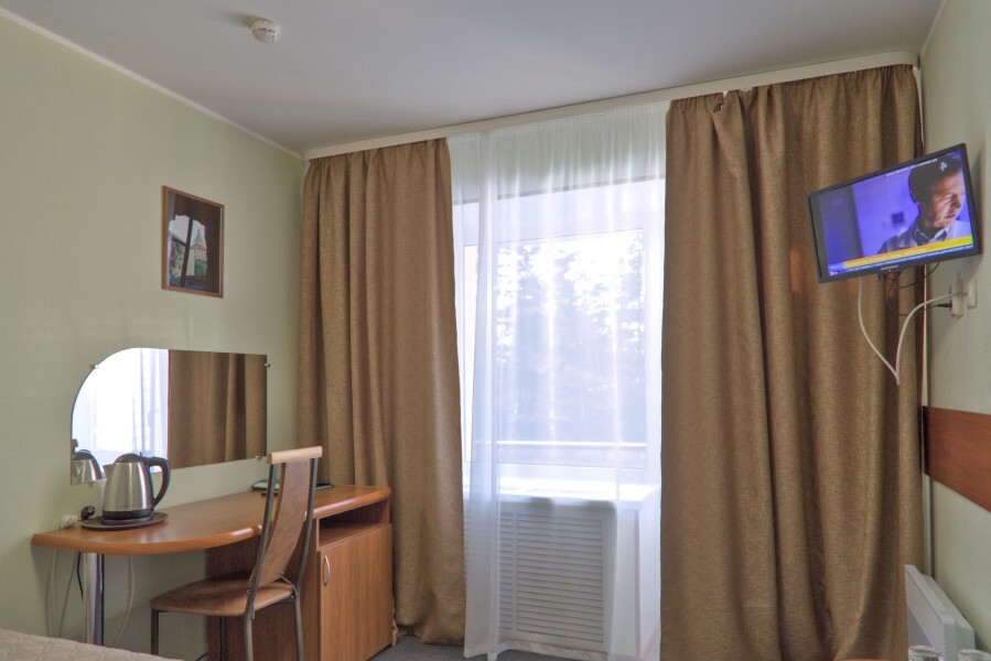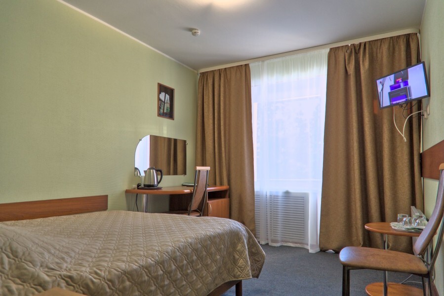 В номере имеется: кровать (120х200; 160х200), рабочий стол или туалетный столик, холодильник, ТВ, WI-FI, фен, чайник, посуда.