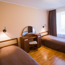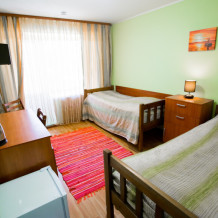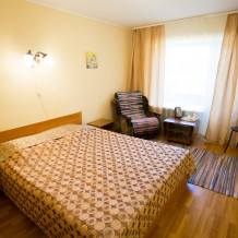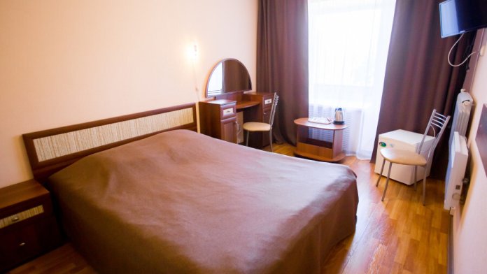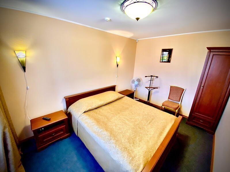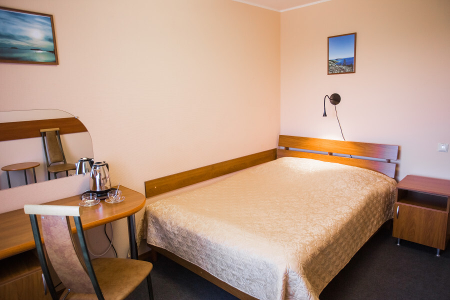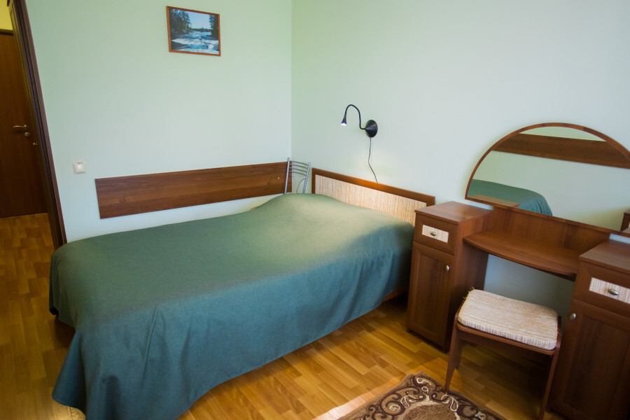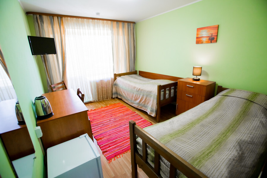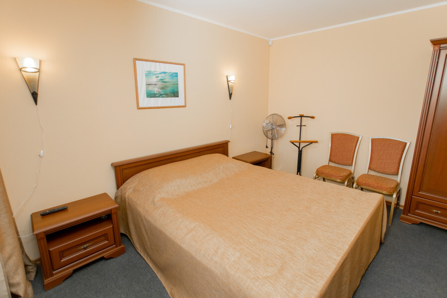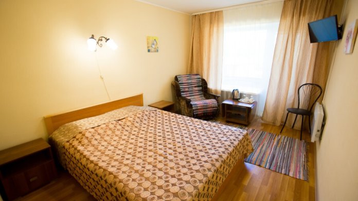 Однокомнатный номер: комната, ванная комната с душевой кабиной. В номере имеется: 2-спальная кровать, кресло-кровать, холодильник, WI-FI, фен, чайник.
