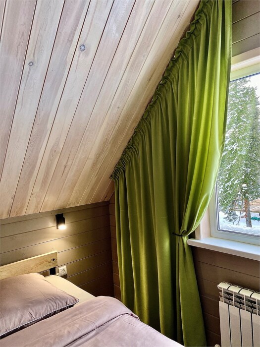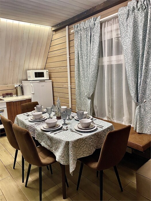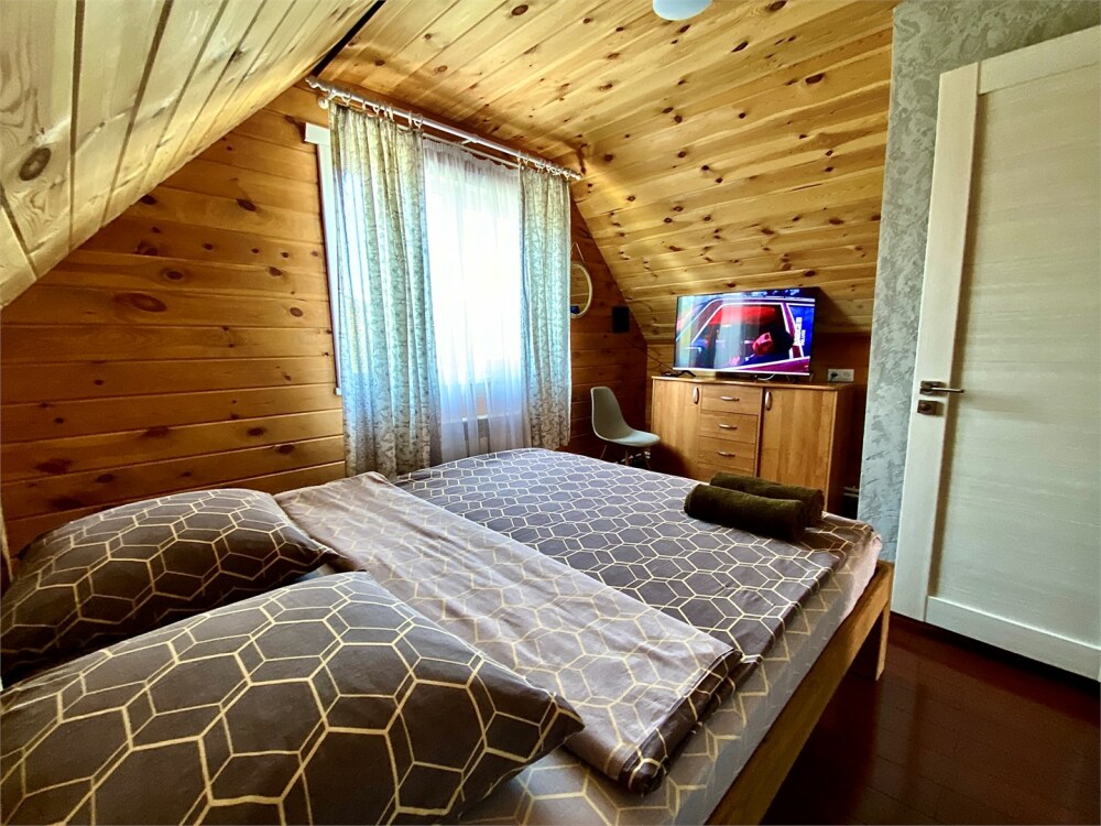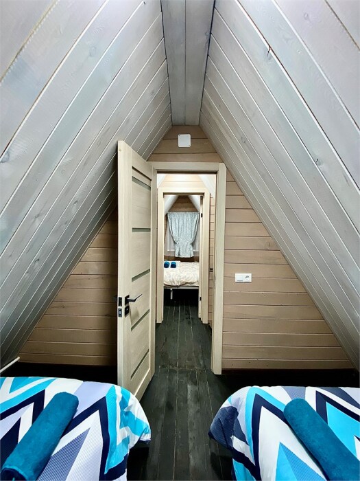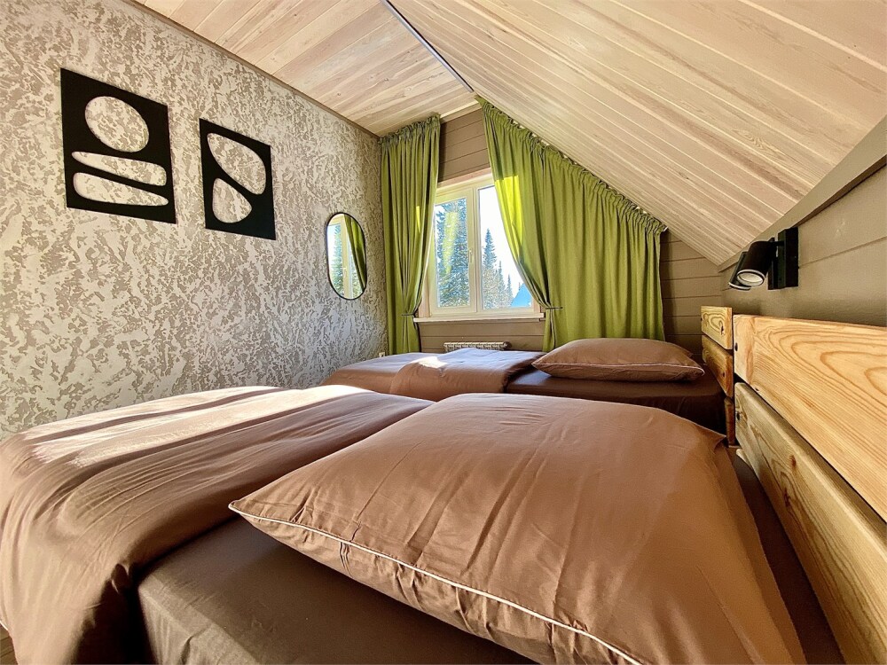 Уютный дом в стиле А-фрейм, 65 м2 с тремя изолированными спальнями в современном исполнении. Входит в состав комплекса Избушки guestHouse.