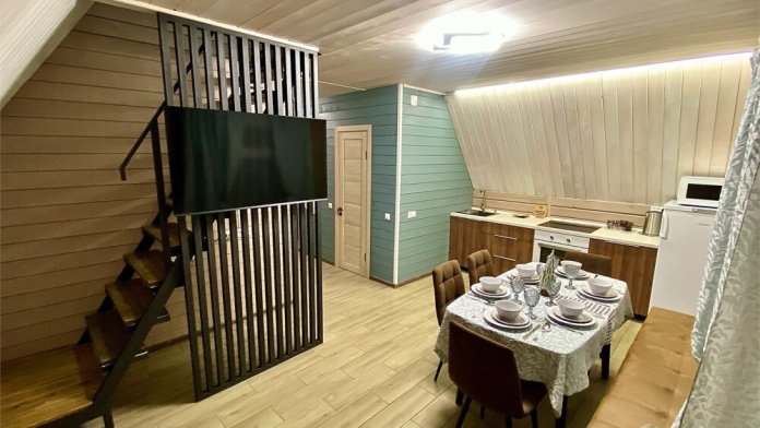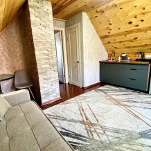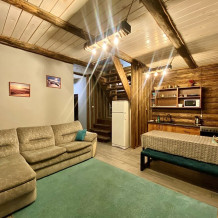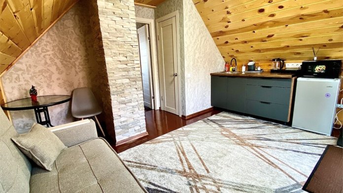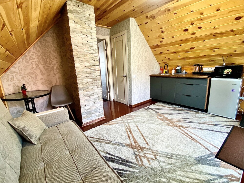 Уютные апартаменты, рассчитаны для размещения 3 гостей. Имеется все необходимое для комфортного пребывания. Расположены над баней. Баня только для гостей комплекса.