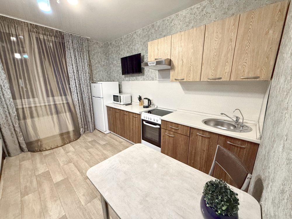 Кухня полностью оборудована: холодильник, микроволновая печь, посуда.