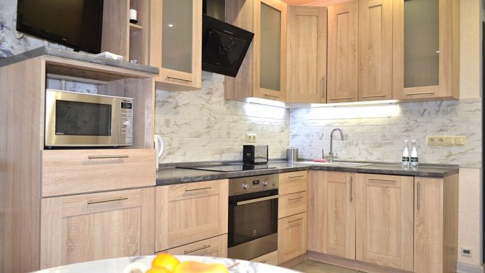 - Двуспальная кровать (double), просторный балкон с рабочим местом, полностью оборудованная кухня, раздельный санузел со стиральной машиной.
