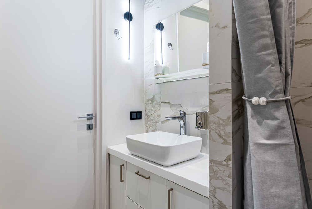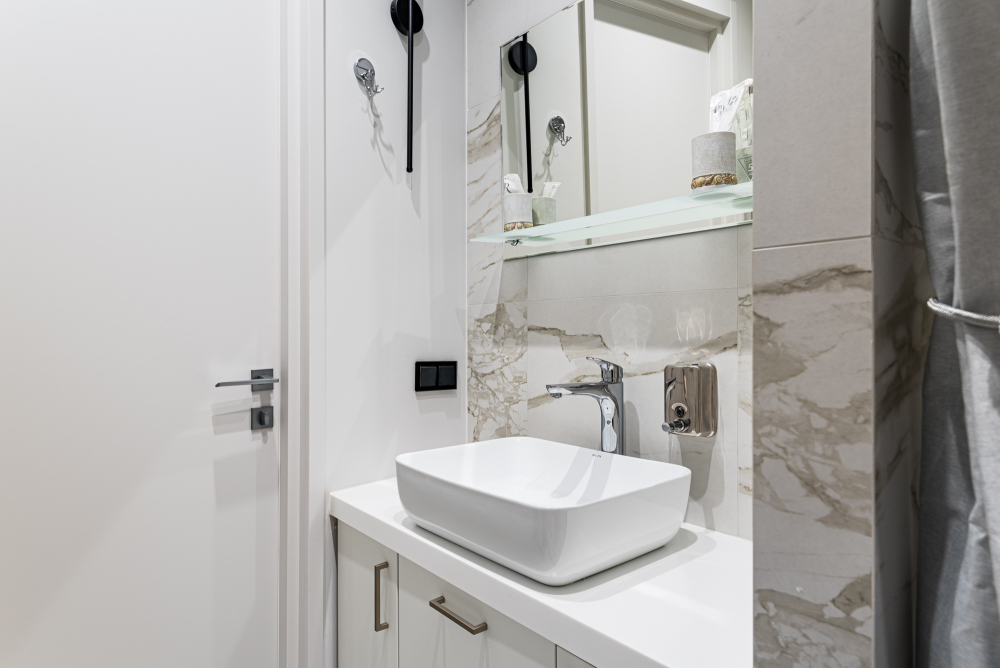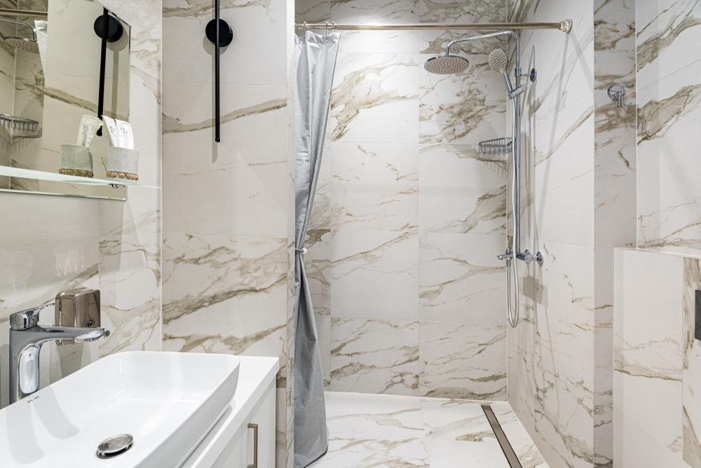 - Современная ванная комната с душем.