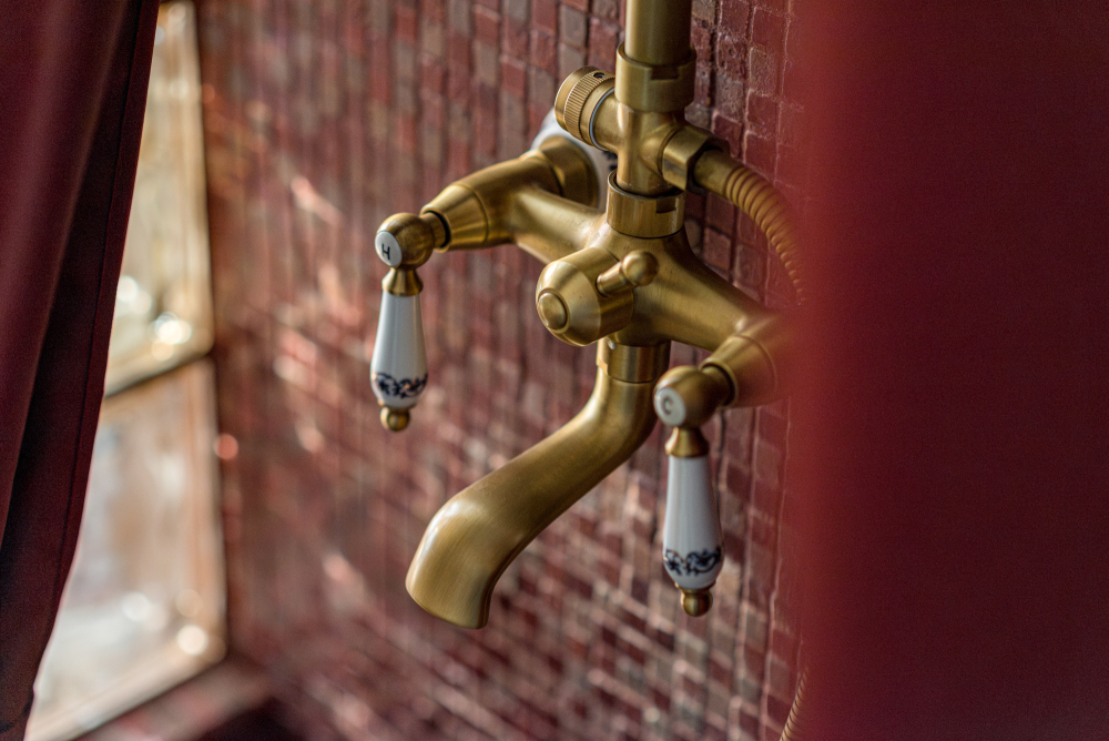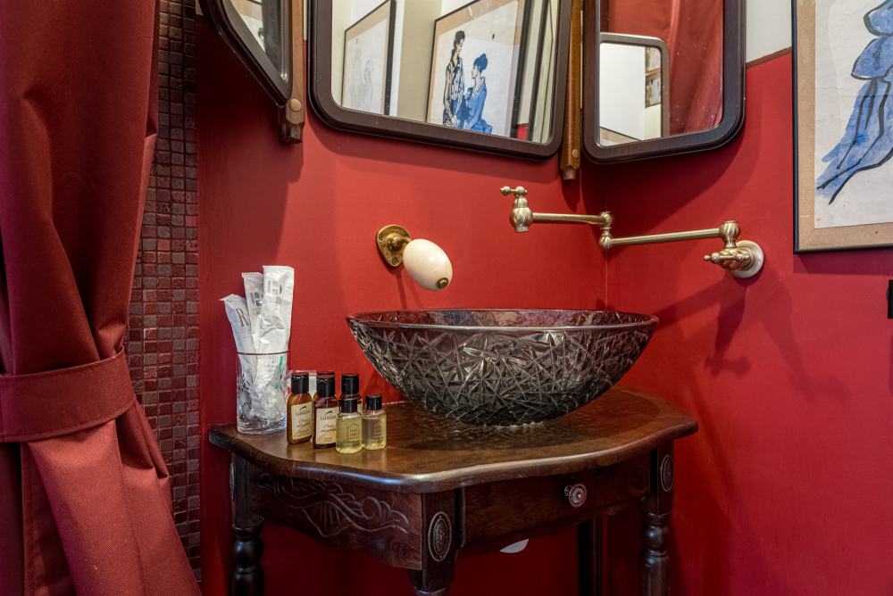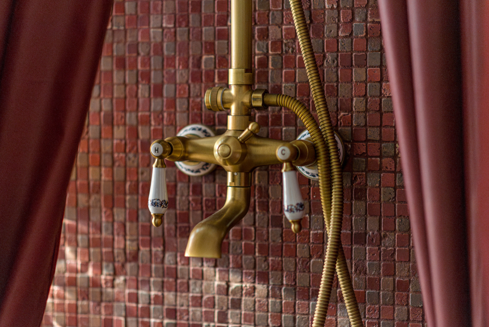 - Ванная с мозаикой и ретро-элементами.