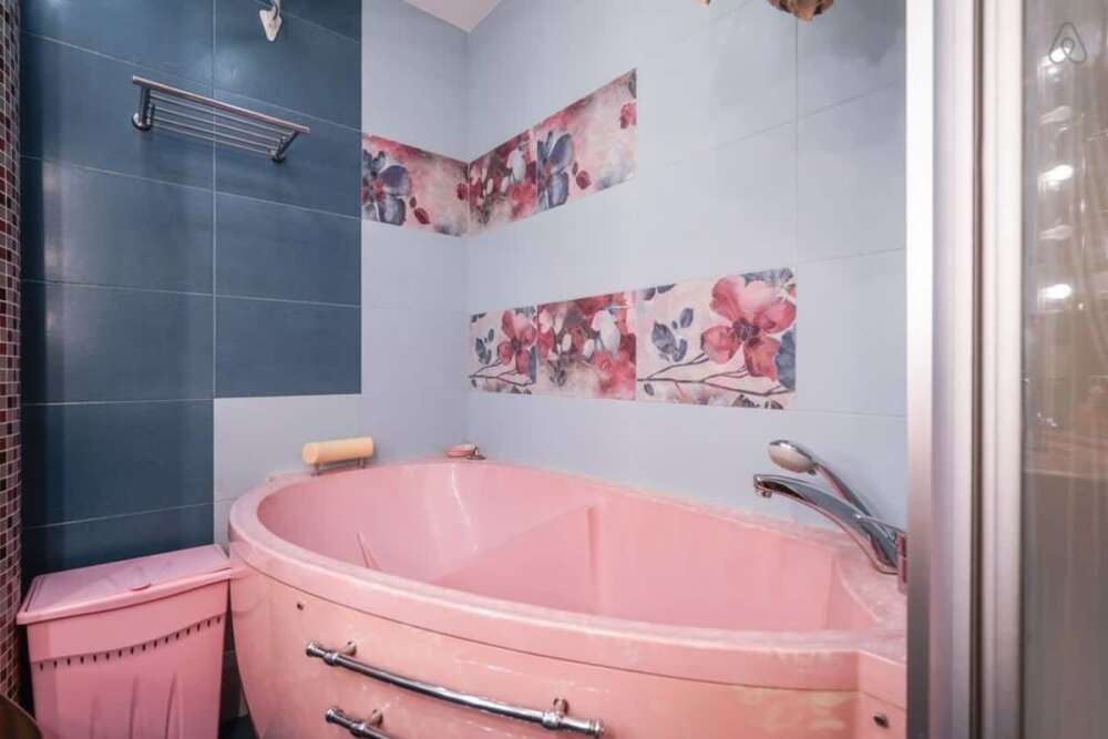 - Совмещенная гостиная-кухня с диваном, обеденной зоной и барной стойкой, спальня с большой кроватью, полностью оборудованная кухня (посудомойка, кофемашина!), ванная с ванной.