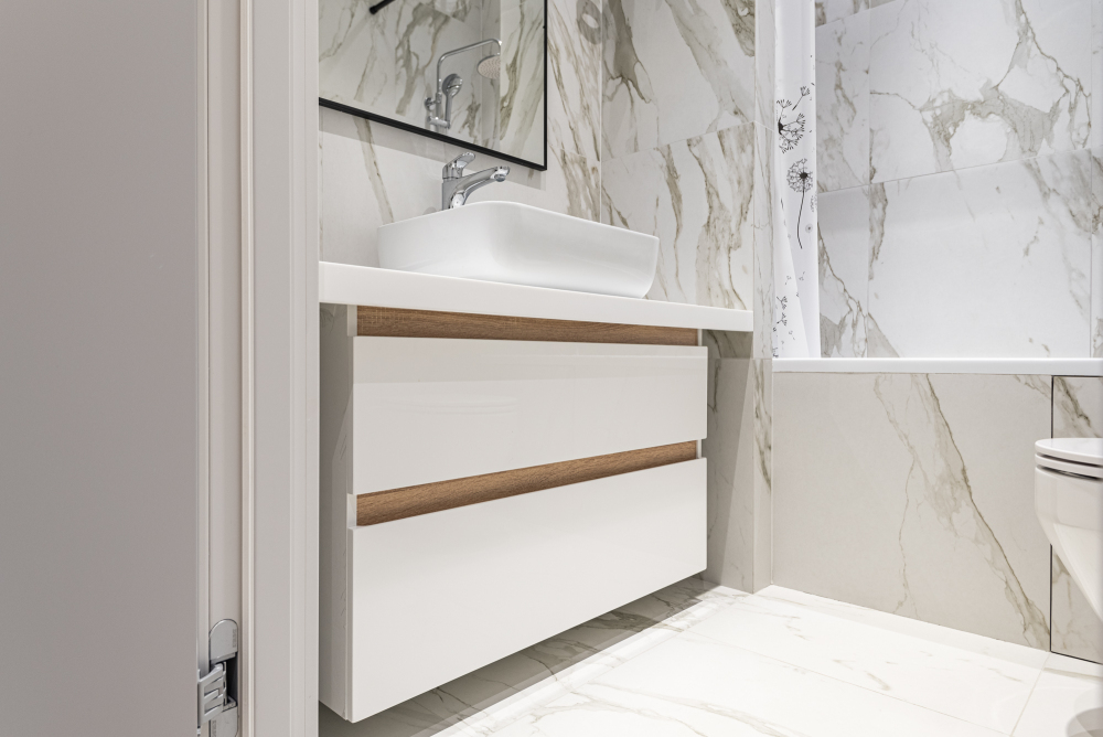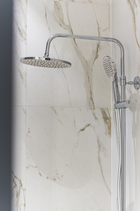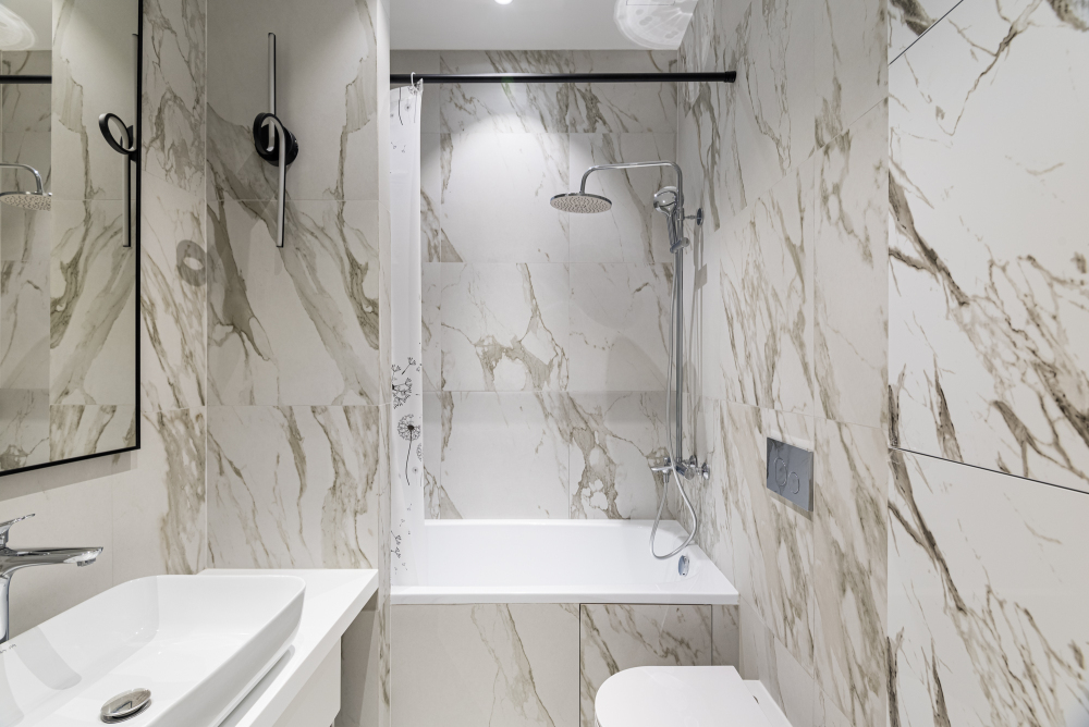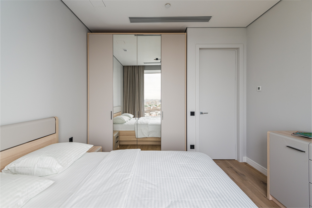 Новый современный ремонт: светлая кухня с встроенной техникой, уютная спальня с большой кроватью и свежим матрасом, стильная ванная комната с отделкой под мрамор. Всё сделано с любовью к деталям.