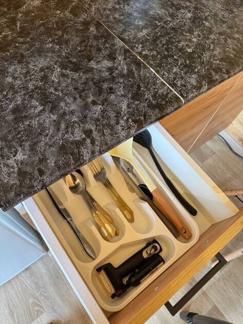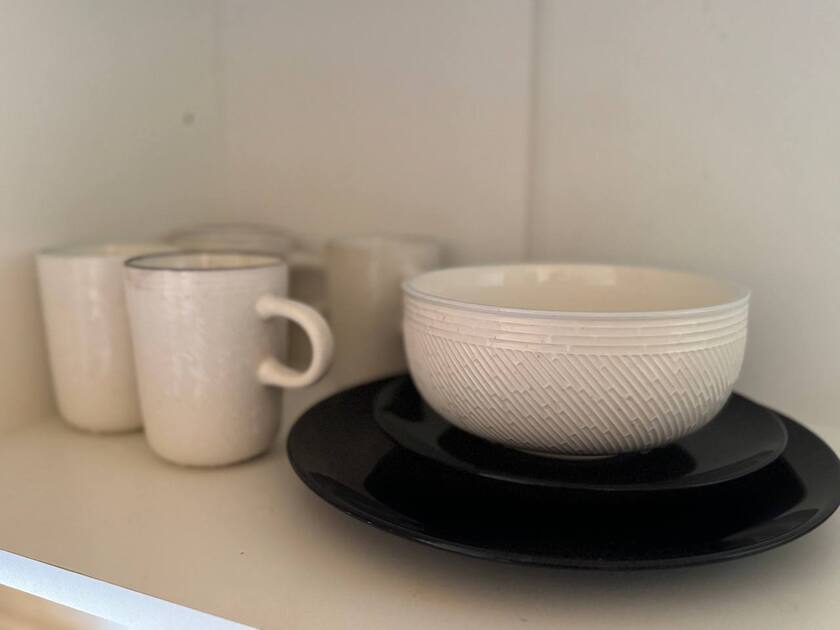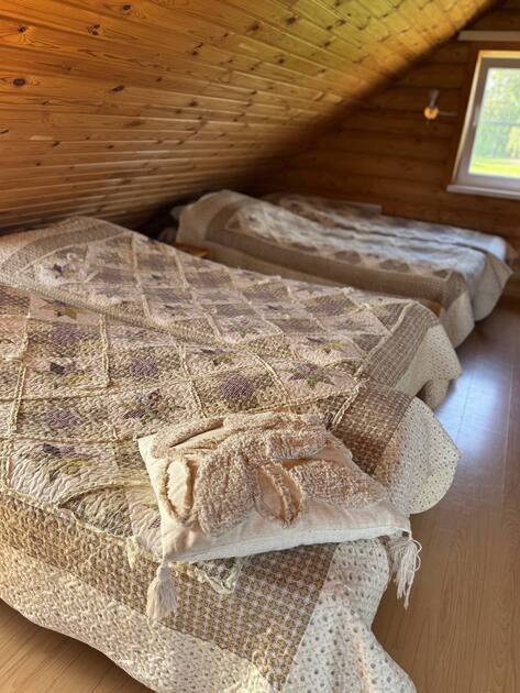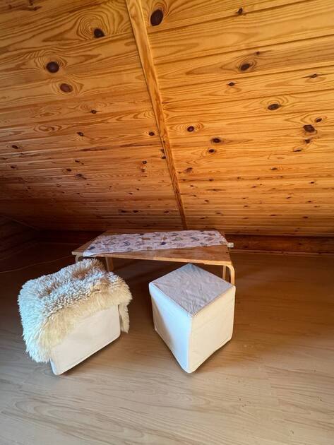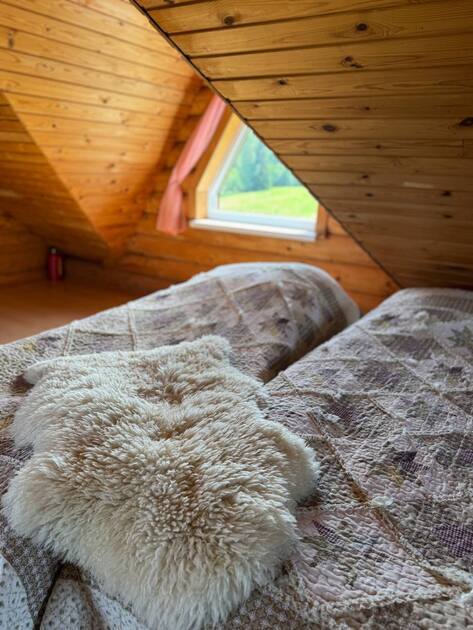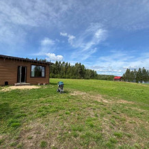 Домик вмещает в себя компанию до 6 гостей: двуспальная кровать в изолированной спальной комнате, раскладной двухместный диван, односпальные кровати на мансардном этаже, обеденная группа для 6 гостей, ТВ, свежее постельное и полотенца, душ, раковина, унитаз, гигиенические принадлежности, кухонная зона (холодильник, чайник, плита, микроволновая печь), вся необходимая посуда для готовки и сервировки.
