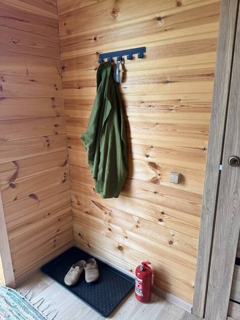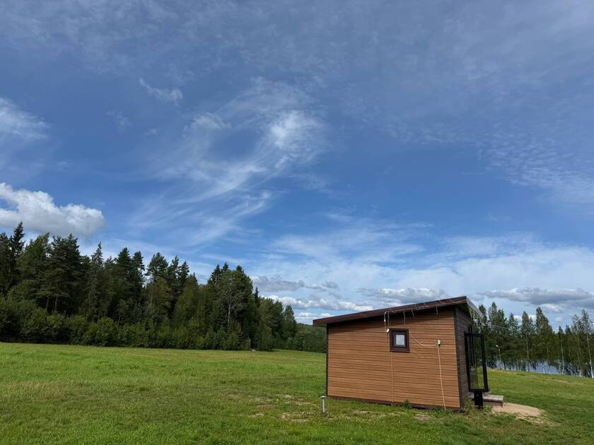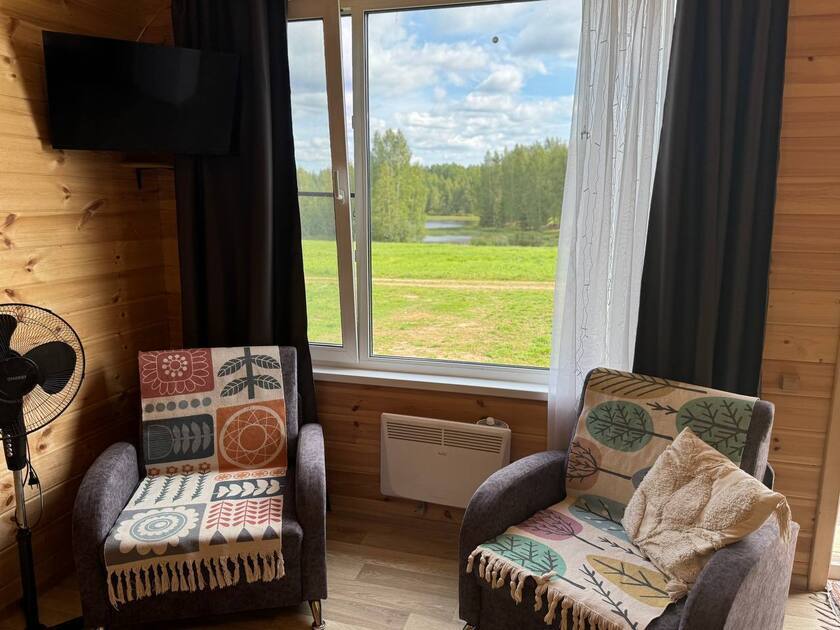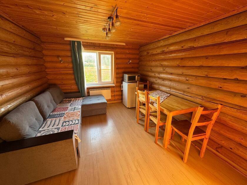 Домик вмещает в себя компанию до 4-х гостей, для Вашего комфорта: двуспальный диван, односпальные кресла-кровати, обеденная группа для 4-х гостей, ТВ, свежее постельное и полотенца, душ, раковина, унитаз, гигиенические принадлежности, кухонная зона (холодильник, чайник, плита, микроволновая печь), вся необходимая посуда для готовки и сервировки.