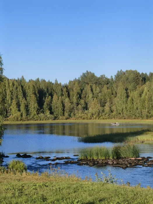 Локация потрясает своим видом на реку и буквально утопает в зелени - на территории свой пирс, аренда лодки, баня и возможность рыбачить прямо у домика!