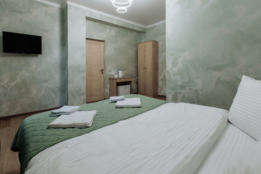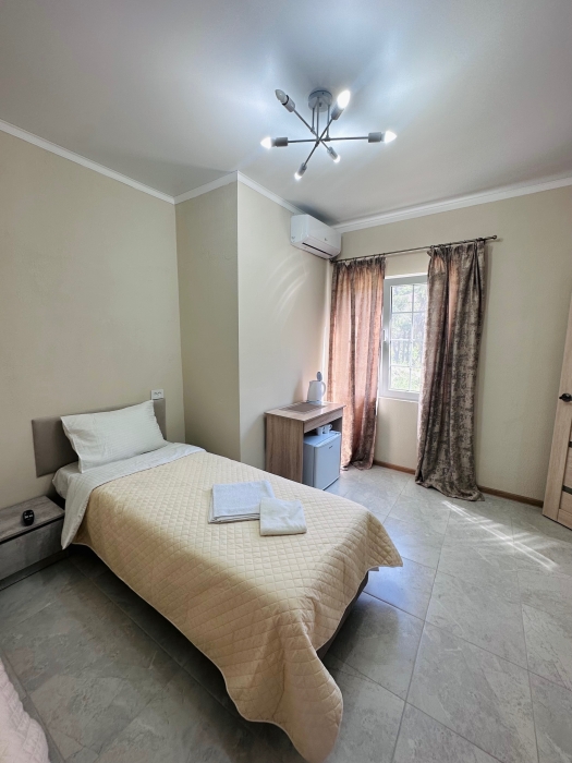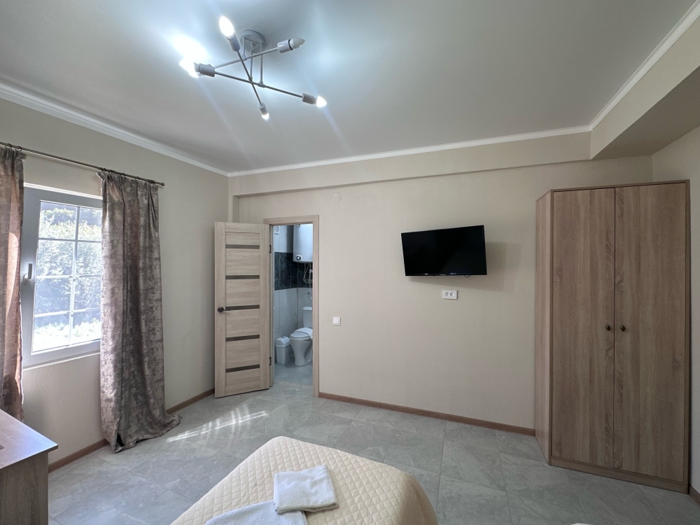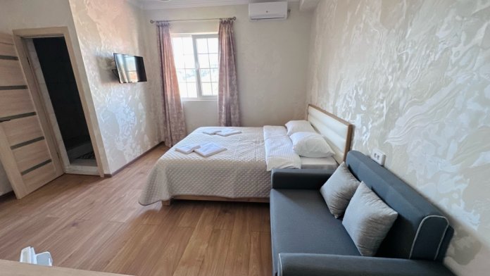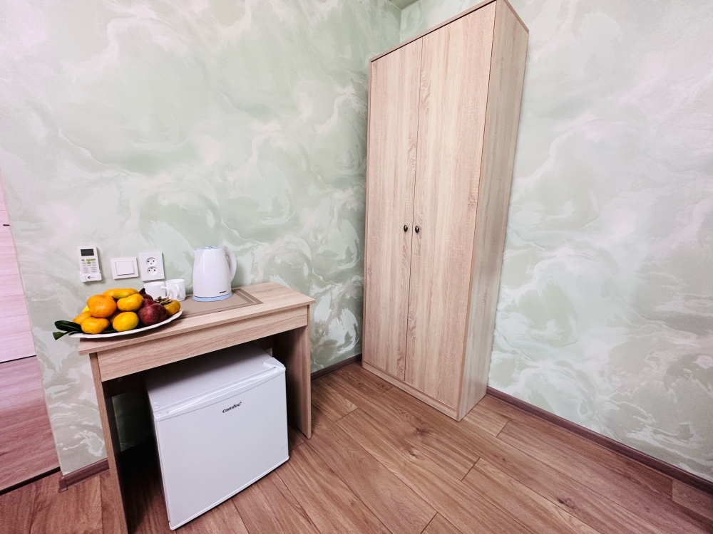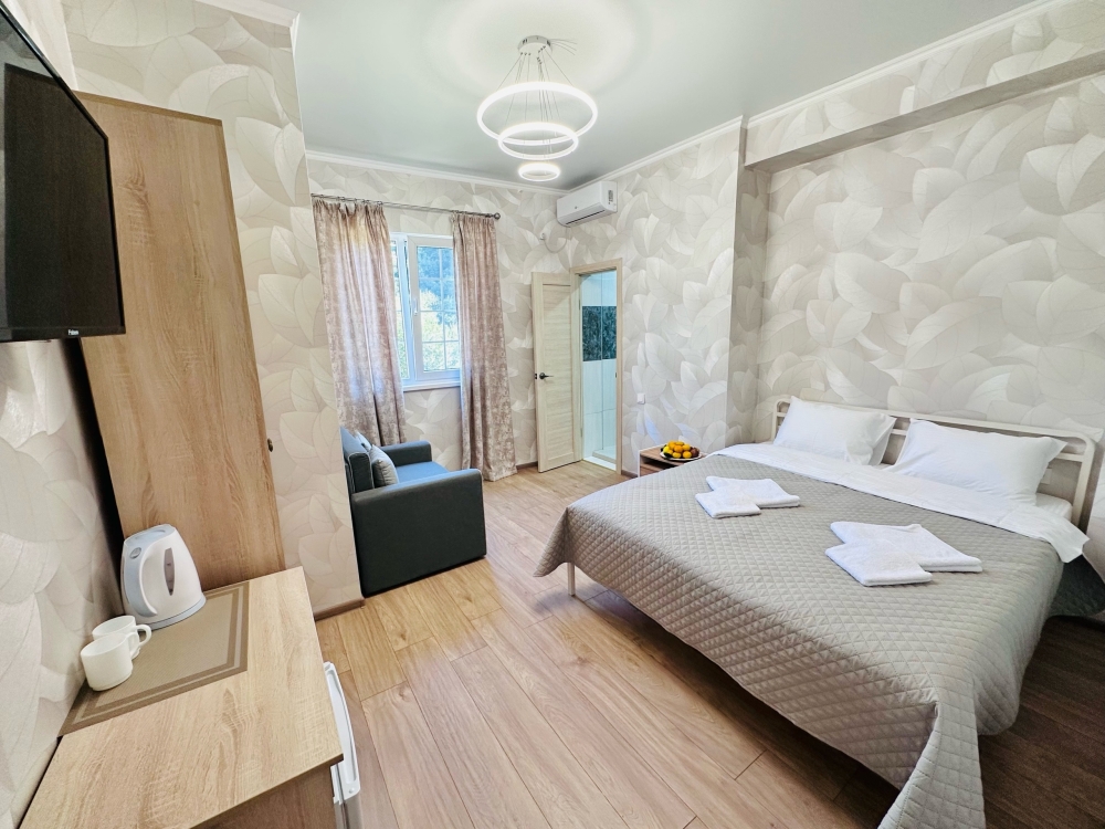 Номера оборудованы феном, мини-холодильником, электрическим чайником, тапочками, набором для чаепития, бокалами, сплит-системой, душем и туалетом, установлены москитные сетки на окнах.