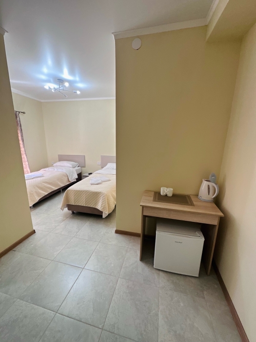Семейный номер с 2 изолированными спальнями, в каждой спальне - душ и туалет, кондиционер, мини-холодильник, электрический чайник, телевизор и фен.