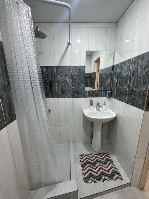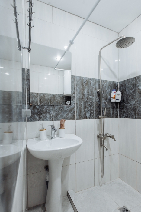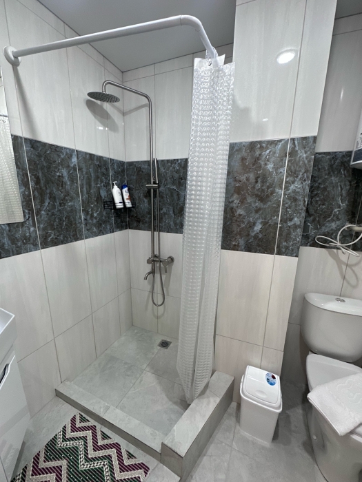 Ванная комната с душевой кабиной , туалетом