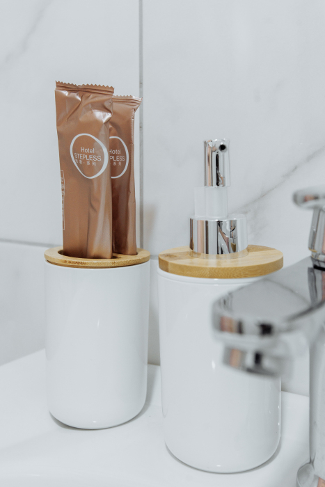 Тапочки, банные принадлежности (щетка, зубная паста, жидкое мыло).