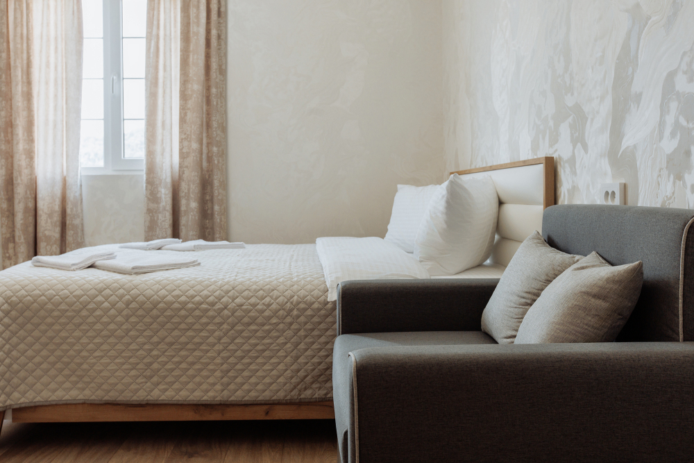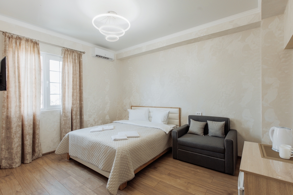 Помимо стандартных 1-комнатных номеров, есть 2-комнатные семейные номера с изолированными спальнями.