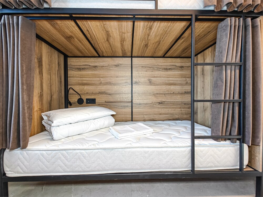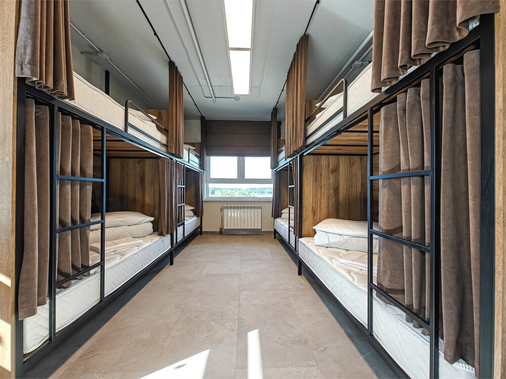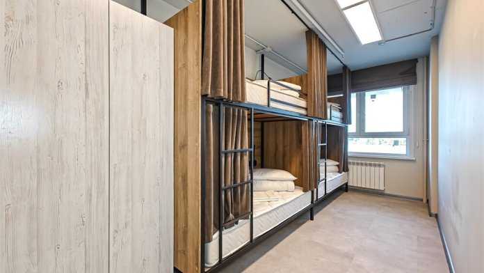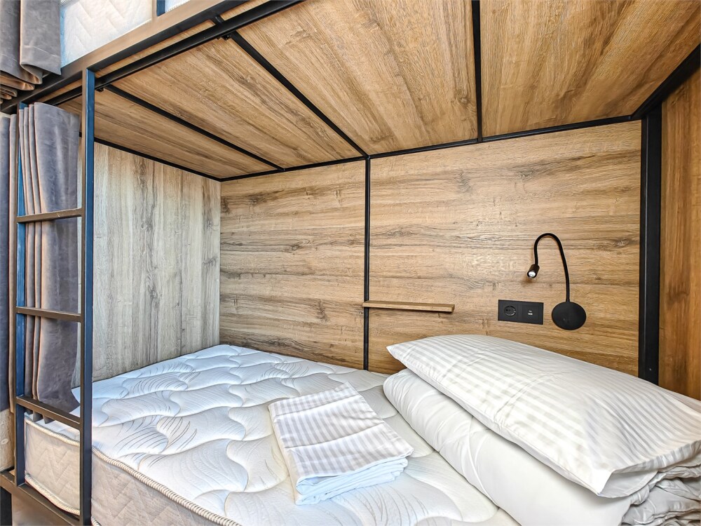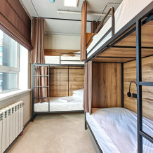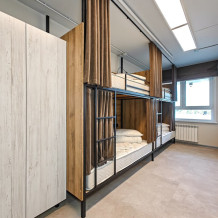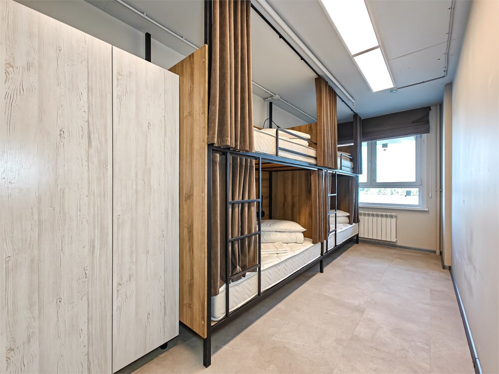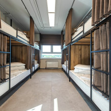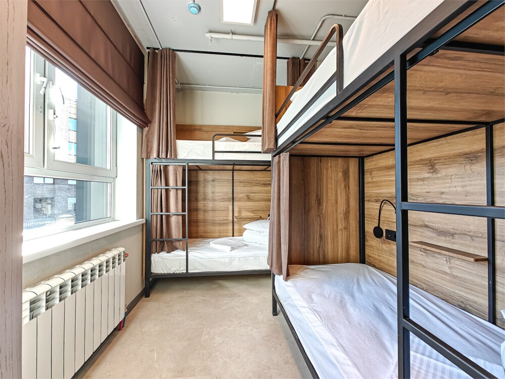 Гостям предлагают размещение в 4, 6 или 8-местном общем номере. У каждого гостя есть бесплатный Wi-Fi, шкафчик, светильник, розетка, постельное бельё и полотенце. Удобства общие на этаже. Из окон открываются панорамные виды на Обь.