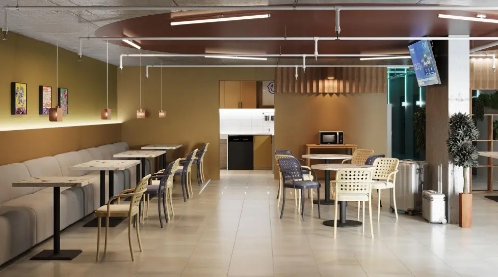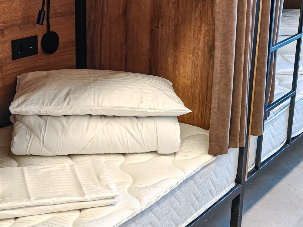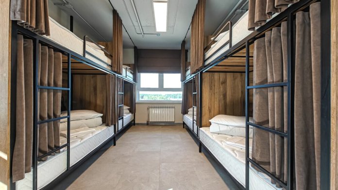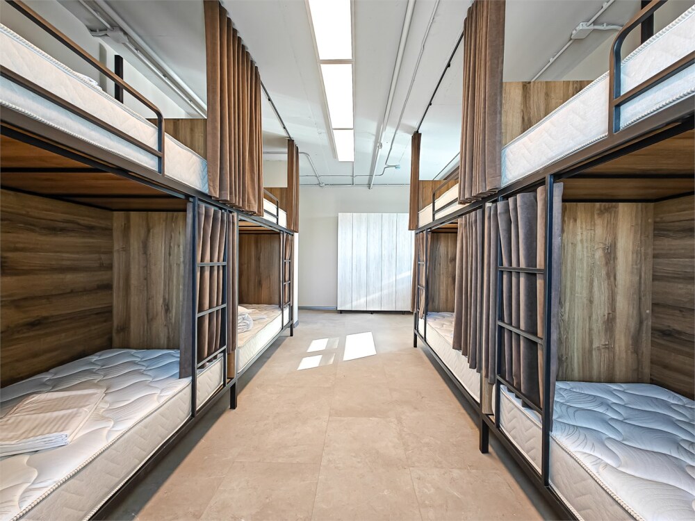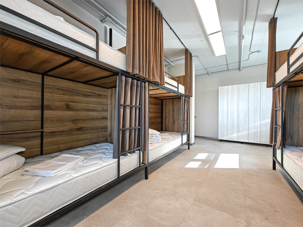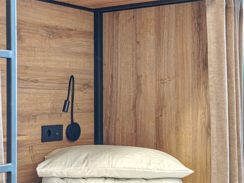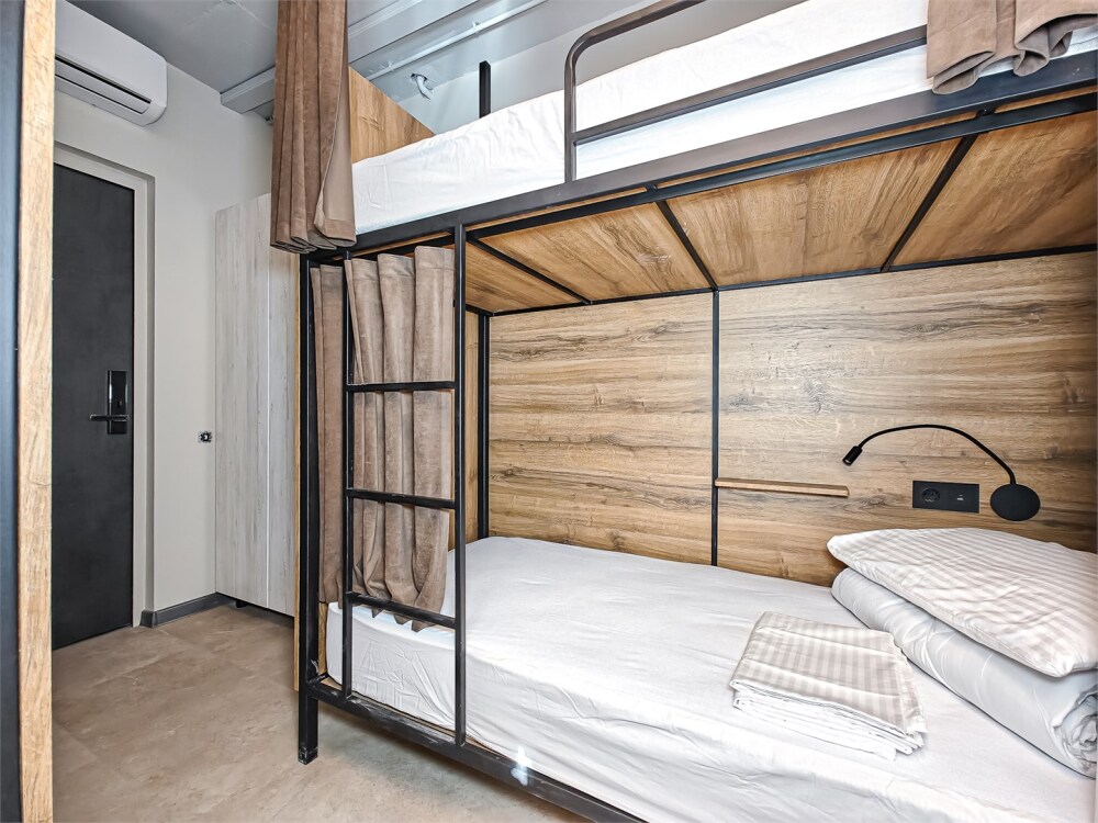 Гостям предлагают размещение в 4, 6 или 8-местном общем номере. У каждого гостя есть бесплатный Wi-Fi, шкафчик, светильник, розетка, постельное бельё и полотенце. Удобства общие на этаже. Из окон открываются панорамные виды на Обь.