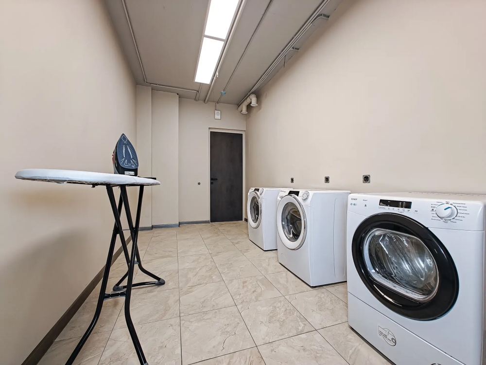 В общем доступе имеется стиральная машина, сушилка для белья, гладильная доска, утюг.