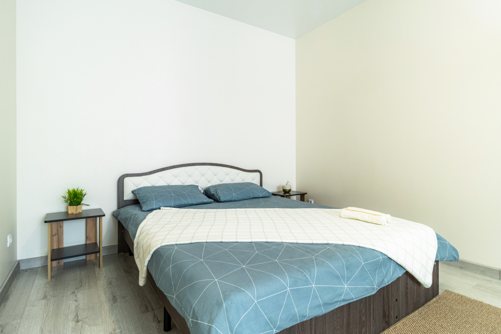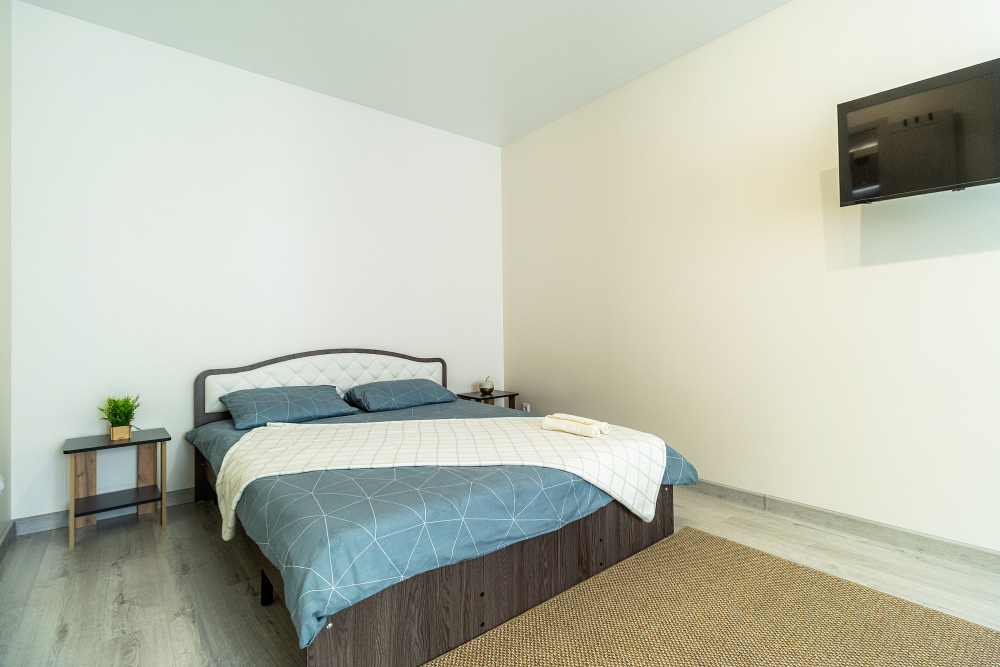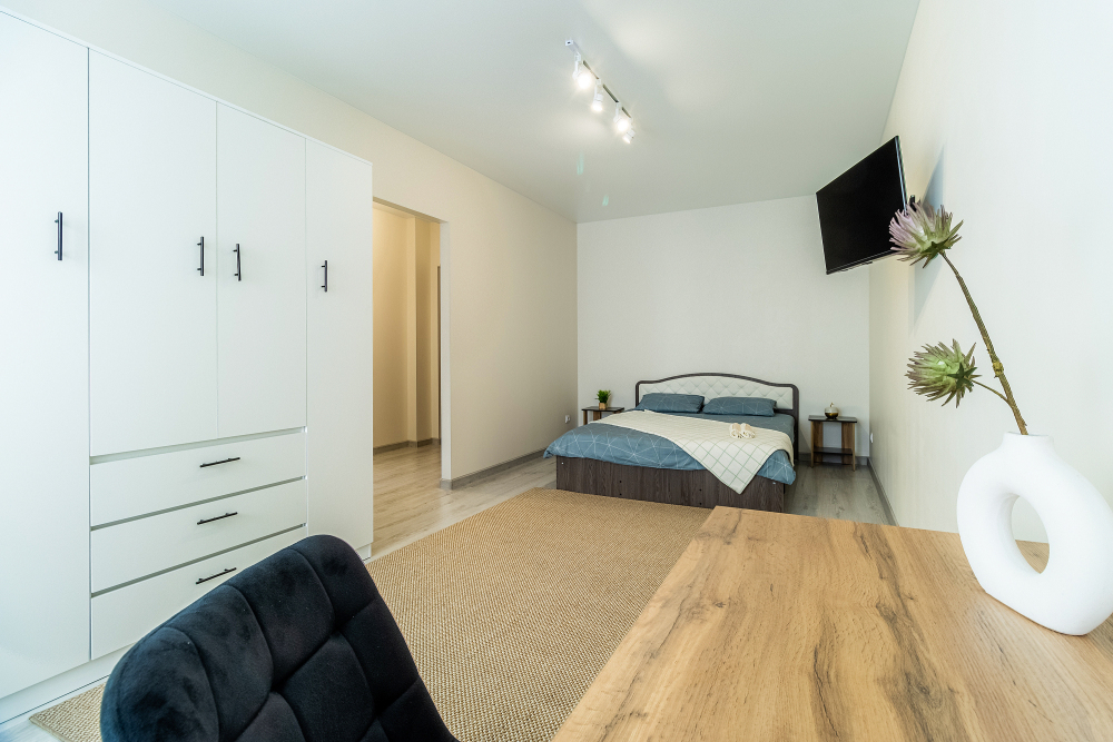 Просторная студия для 4 гостей: Двуспальный диван (180x200) и двуспальная кровать (140x200) с чистейшим постельным бельем.