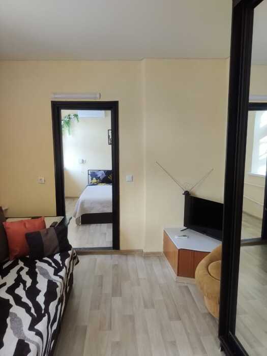 К Вашим услугам 2-спальная ортопедическая кровать с ортопедическим матрасом 140 см, кондиционер, разбирающийся двух спальный диван 170 см, телевизор, огромный шкаф для одежды с зеркалом во весь рост, фен, утюг, журнальный столик, мини холодильник, микроволновка, тостер, электро и обычный чайник, газовая плита с духовкой, посуда, ложки, вилки, ножики, кастрюли, сковородка, кухонная мебель, вешалка для белья, так-же Вы можете запросить у нас дополнительную посуду, технику, если чего-то не хватает (морозилки например), благо мы в соседней квартире!