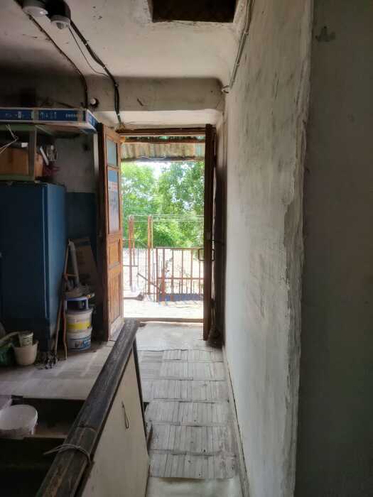 - Левая, разделяющая квартиры стенка на кухне деревянная (в жилых комнатах обычные) и с неиспользуемой дверью в подсобное помещение в нашей квартире.