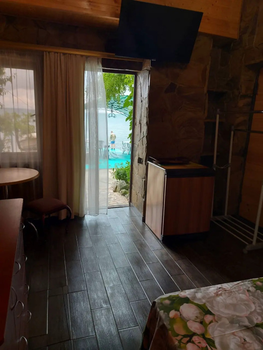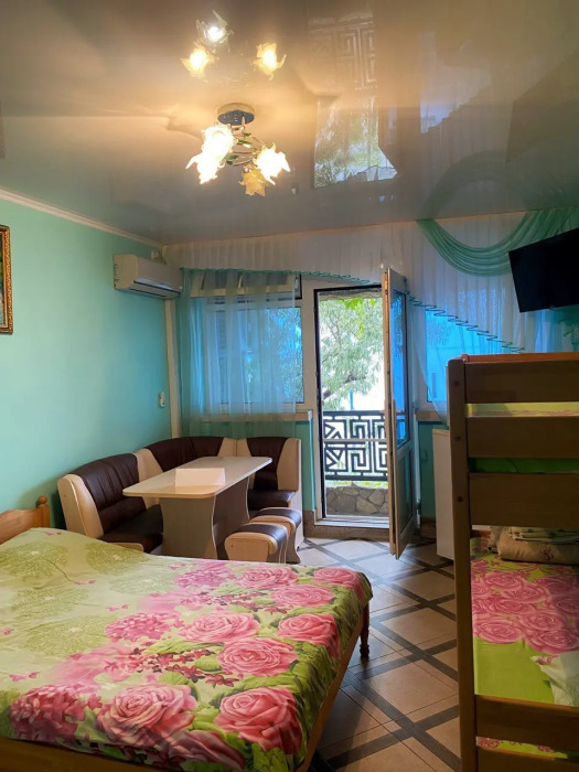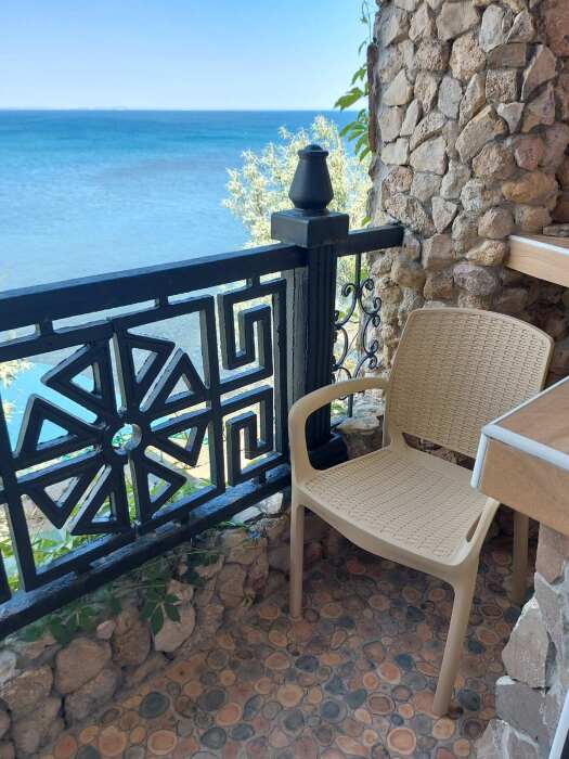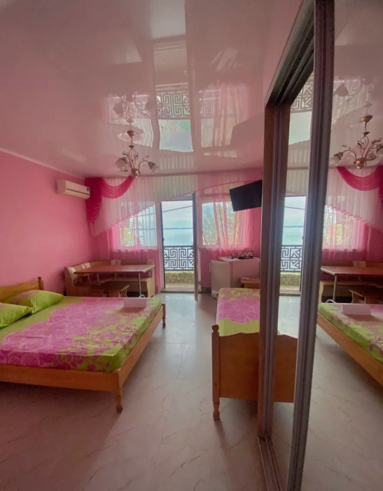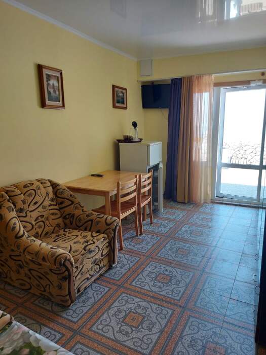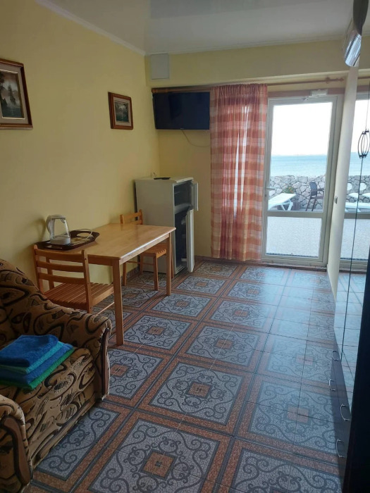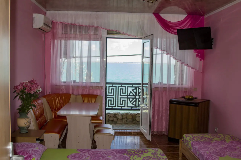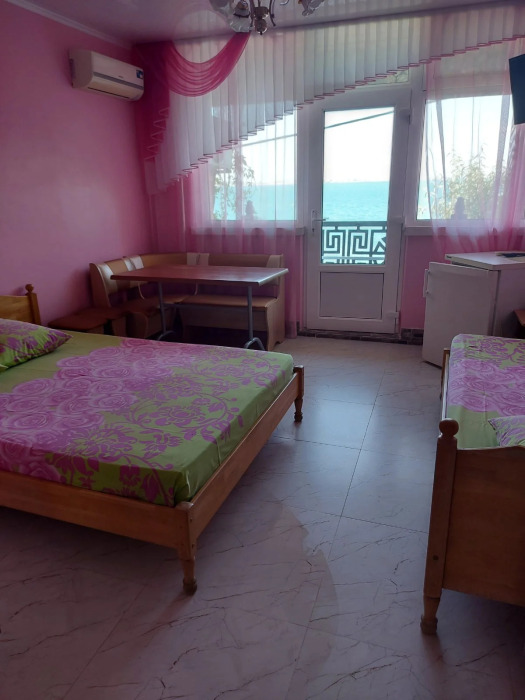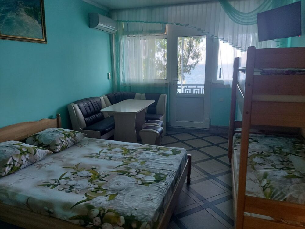 Номер с видом на море. Туалет в номере, душ в номере. Новая мебель, современный ремонт. Номера оборудованы холодильником, телевизором, кондиционером. Действует Wi-Fi.