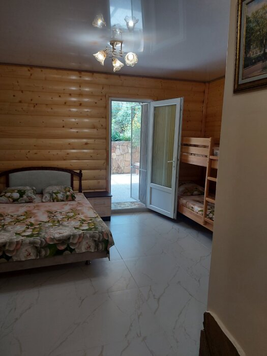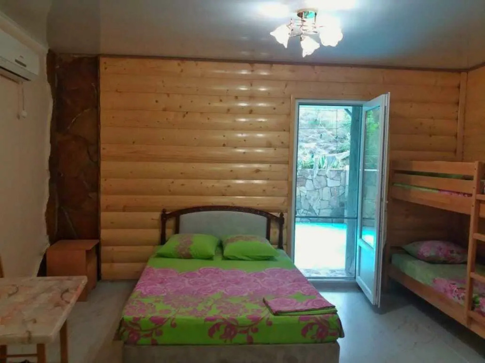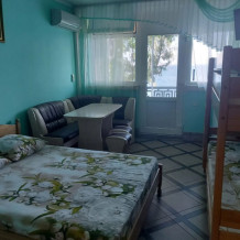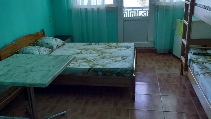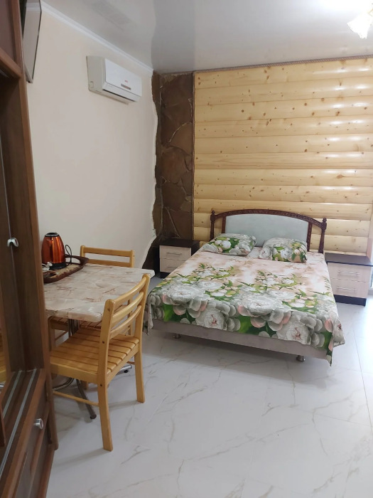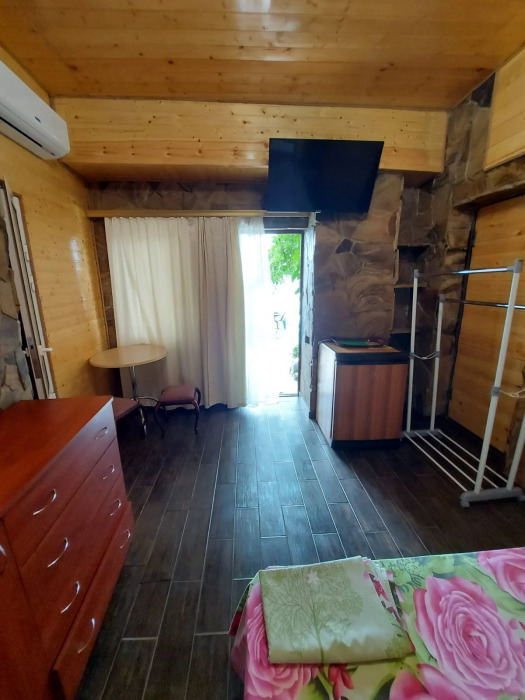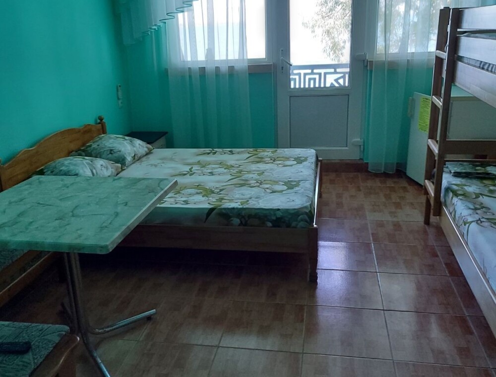 В номере большая 2-х спальная кровать, плазма, кондиционер, холодильник, душ, санузел в номере. Номер расположен вблизи моря.