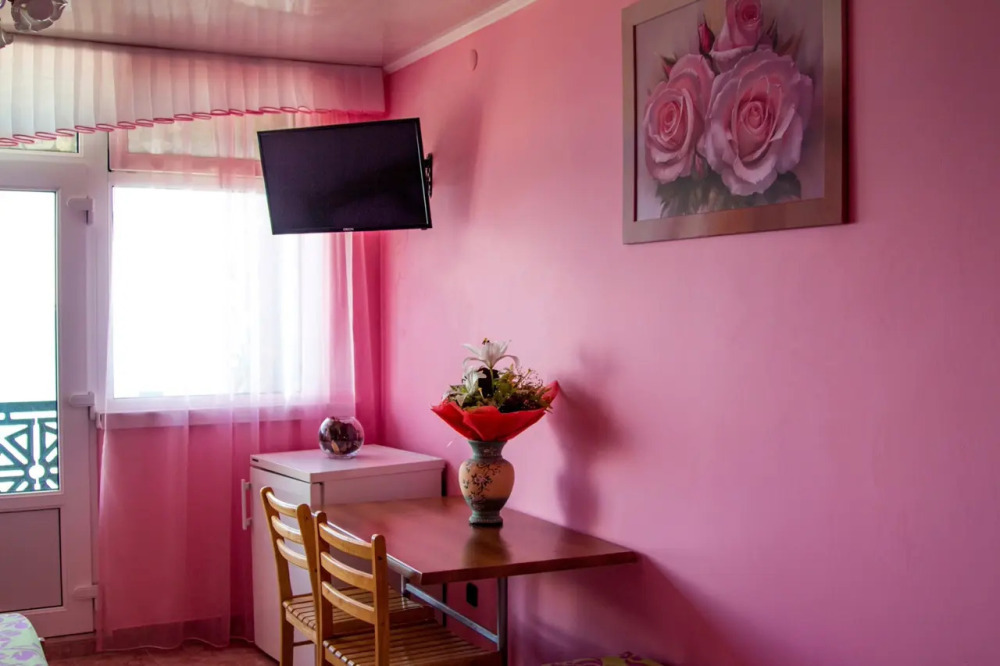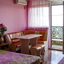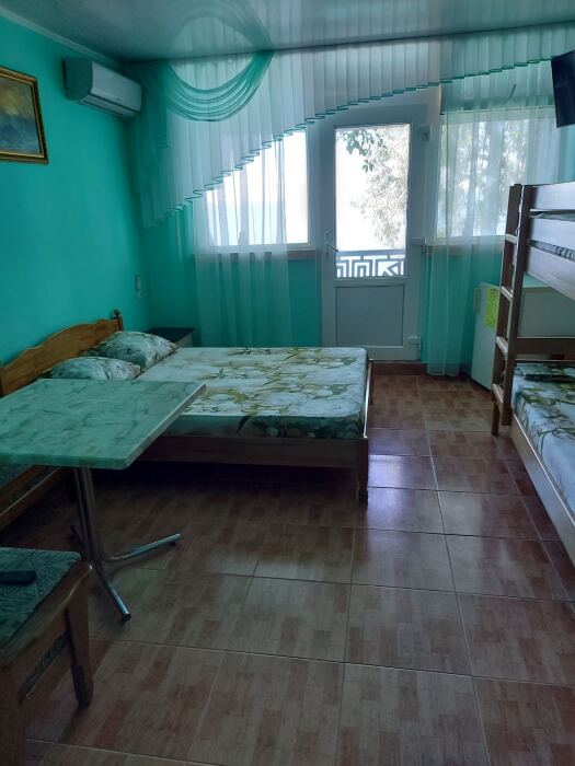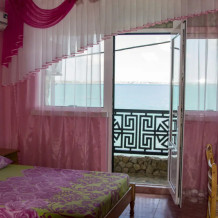 Номер с балконом с видом на море. Туалет в номере, душ в номере. В номере новая мебель, современный ремонт. Номера оборудованы холодильником, телевизором, кондиционером. Действует Wi-Fi.