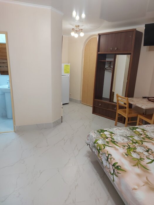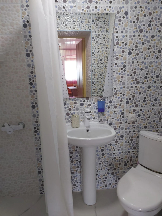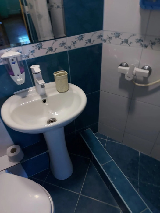 Туалет в номере, душ в номере. В номере новая мебель, современный ремонт. Номера оборудованы холодильником, телевизором, кондиционером. Действует Wi-Fi.