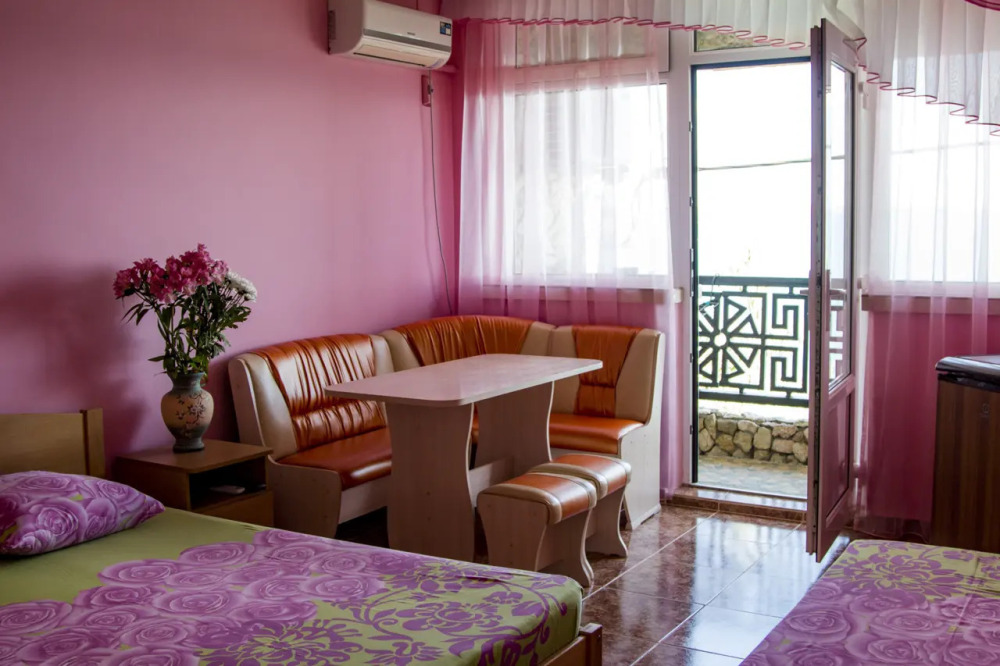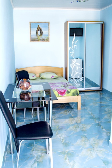 Туалет в номере, душ в номере. В номере новая мебель, современный ремонт. Номера оборудованы холодильником, телевизором, кондиционером. Действует Wi-Fi. Огромная терраса на два номера с великолепным видом на море, мангалом, столиками и шезлонгами.